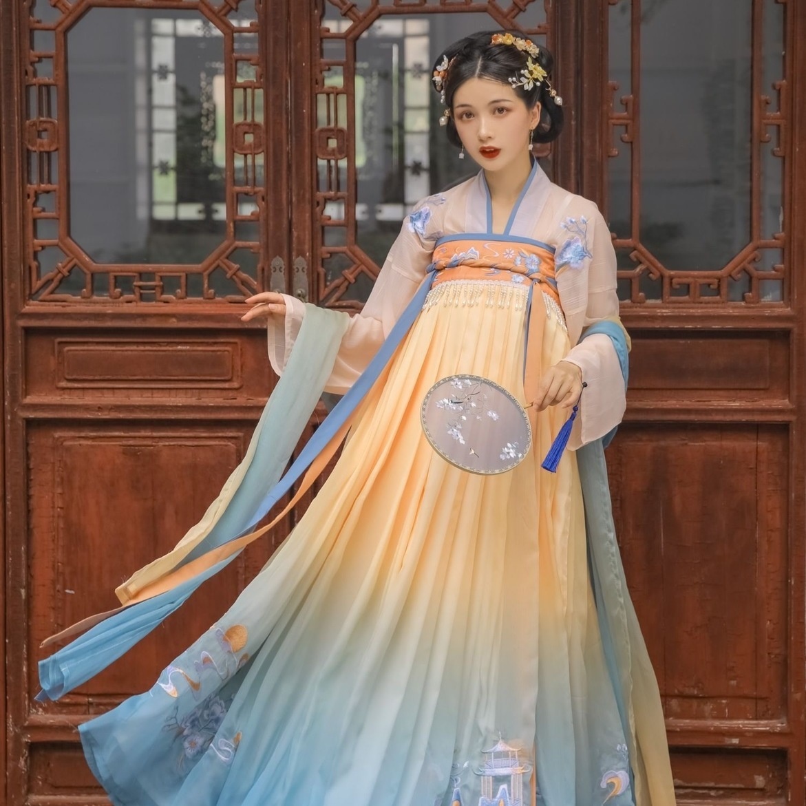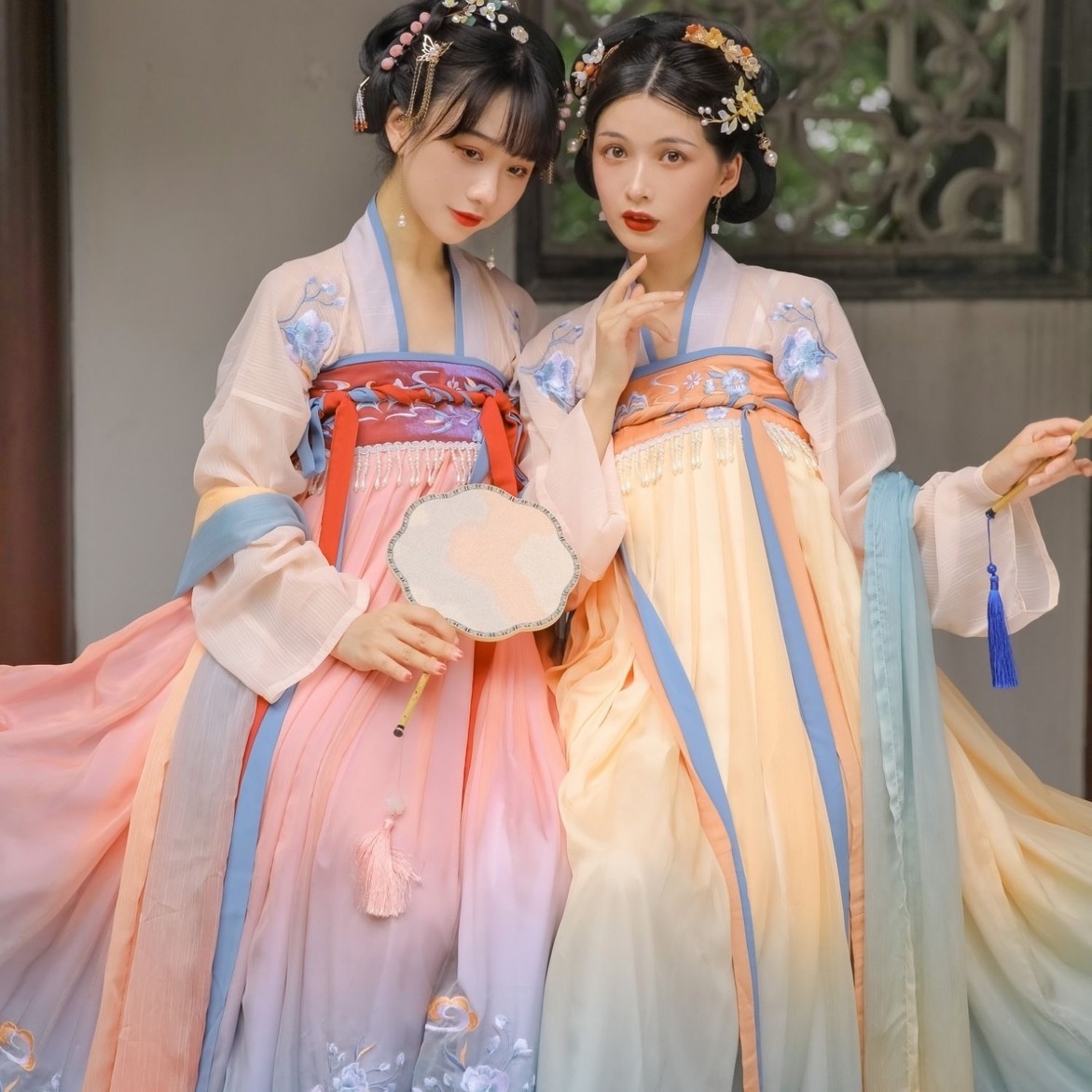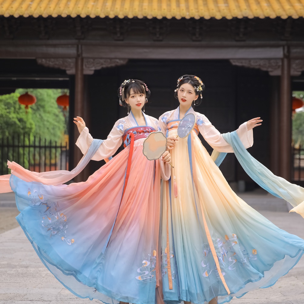 汉十七【花寻月】闺蜜款渐变色6米摆齐胸襦裙绝美 汉服女