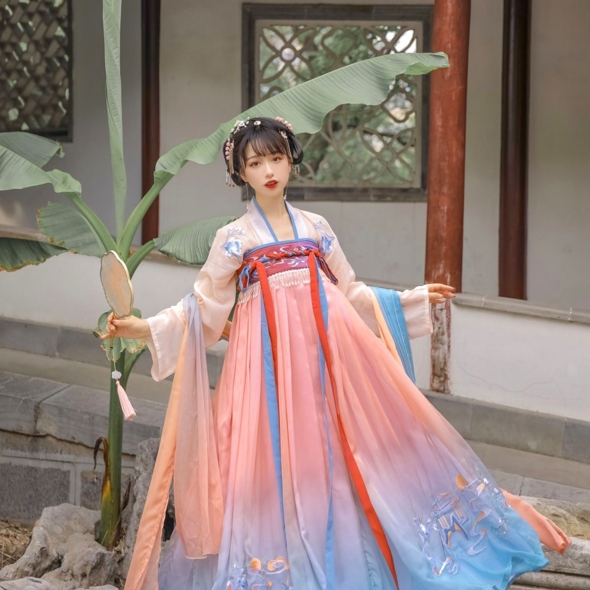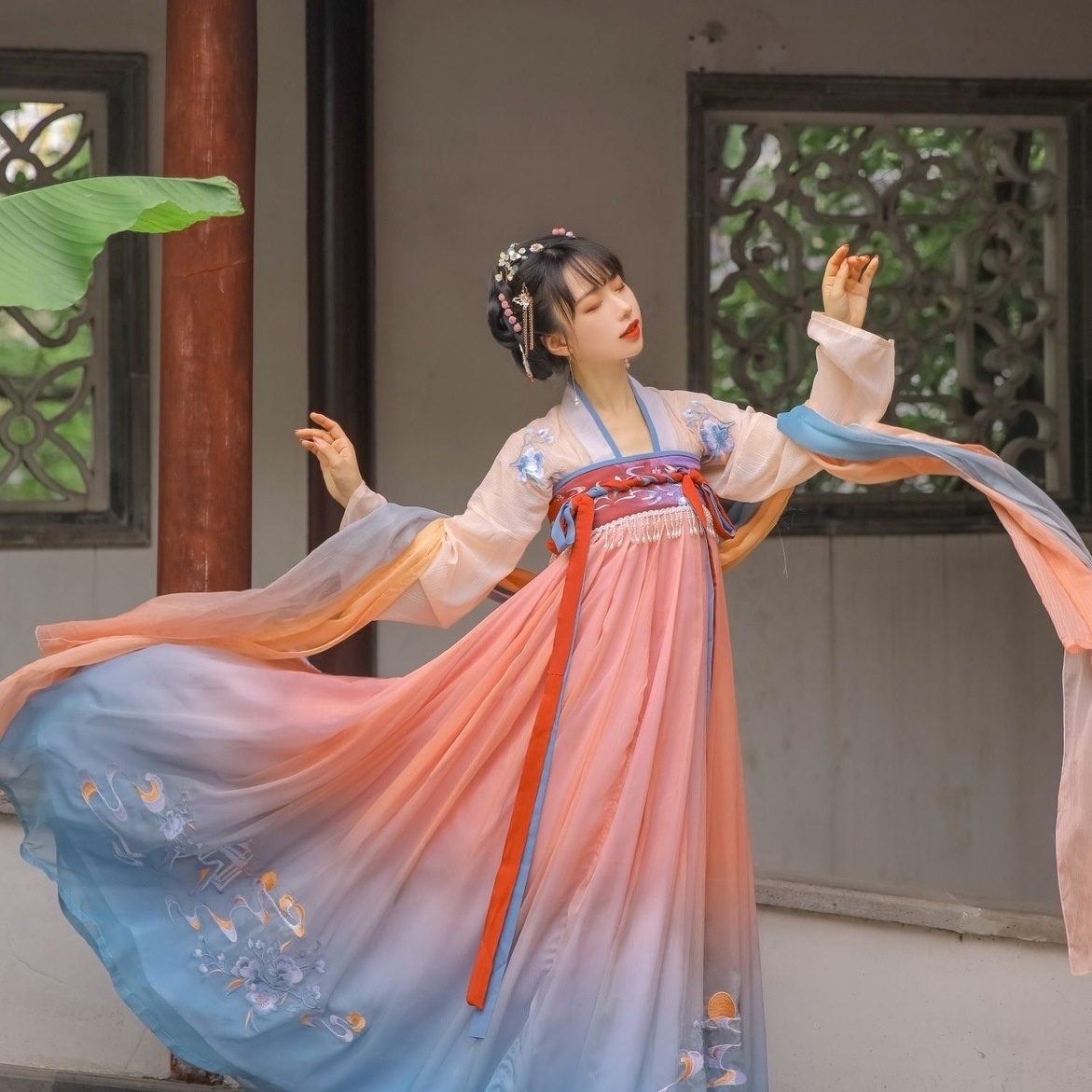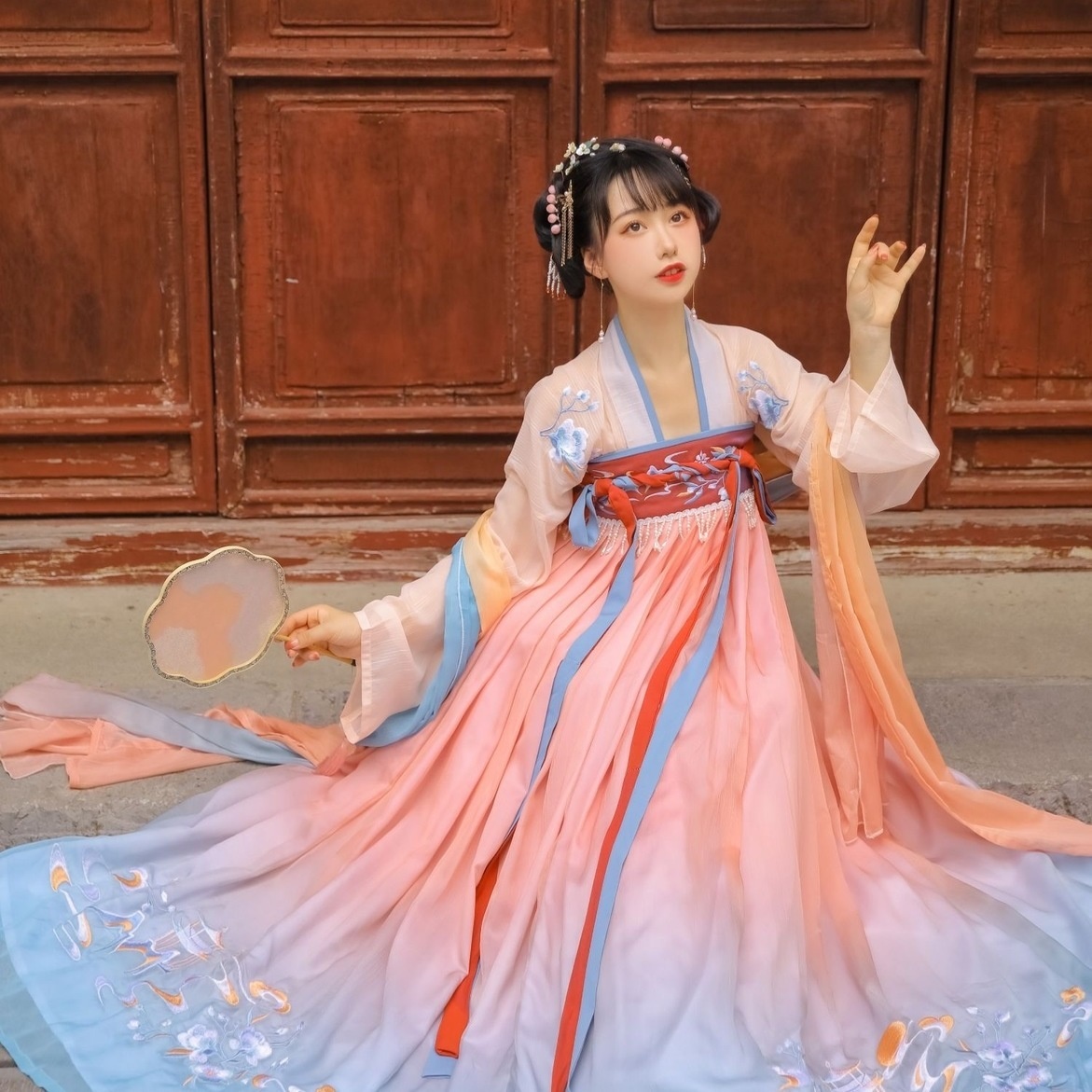 汉十七【花寻月】闺蜜款渐变色6米摆齐胸襦裙绝美 汉服女