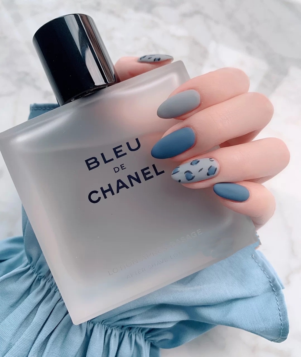 蓝色美甲显白美甲磨砂美甲美甲款式又快到了做豹纹的季节,磨砂配-美图社区-美图秀秀