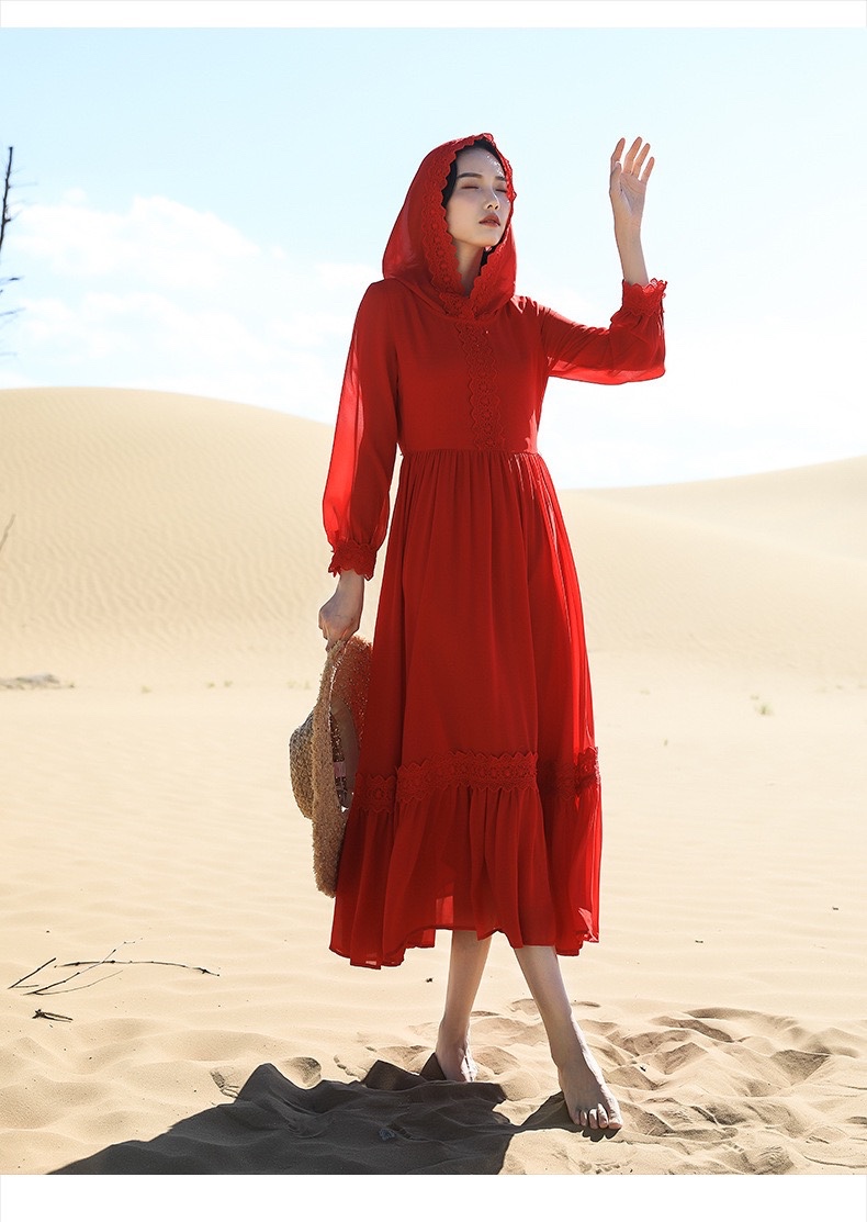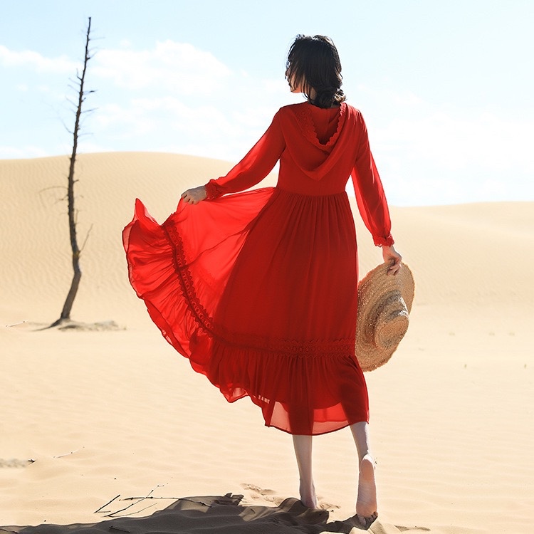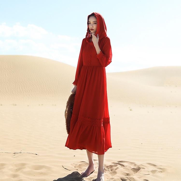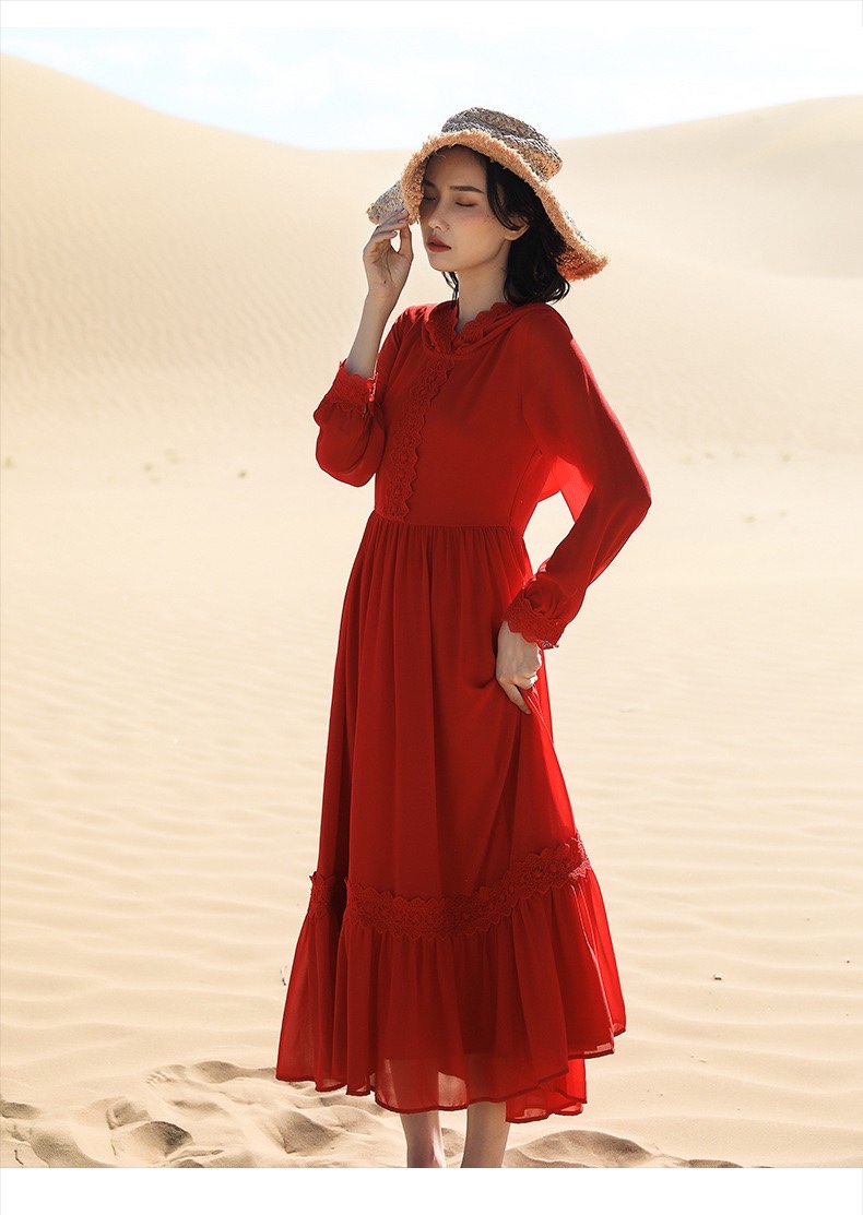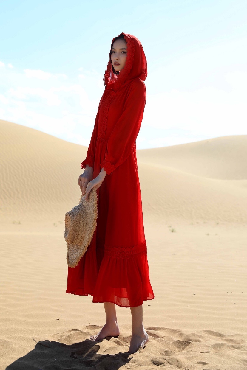 飘逸大裙摆的红裙子。总是能让你在人群中特别耀眼。舒适透气的面料。精致的蕾丝。我爱你。裙子用了浪漫。这精致蕾丝花边。腰部收腰设计。修饰腰部曲线展示婀娜身姿,不管是面料蕾丝工艺,还是各种不同的花边。都是用尽心在做一款大美裙。走动的时候。非常飘逸,特别适合度假!