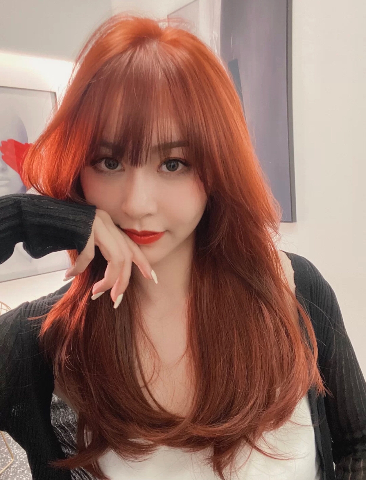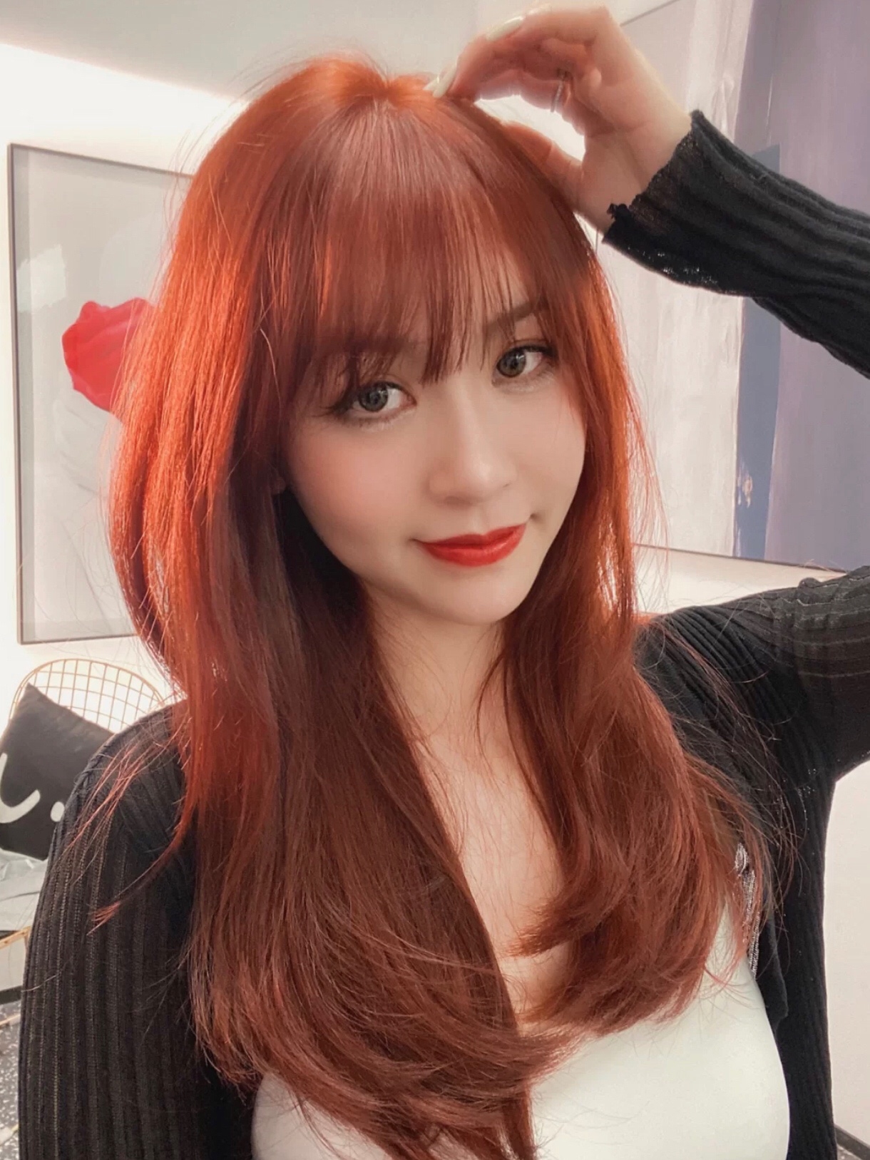 今日分享一款橘红色调发色炒鸡显白而且也能凸显发质质感