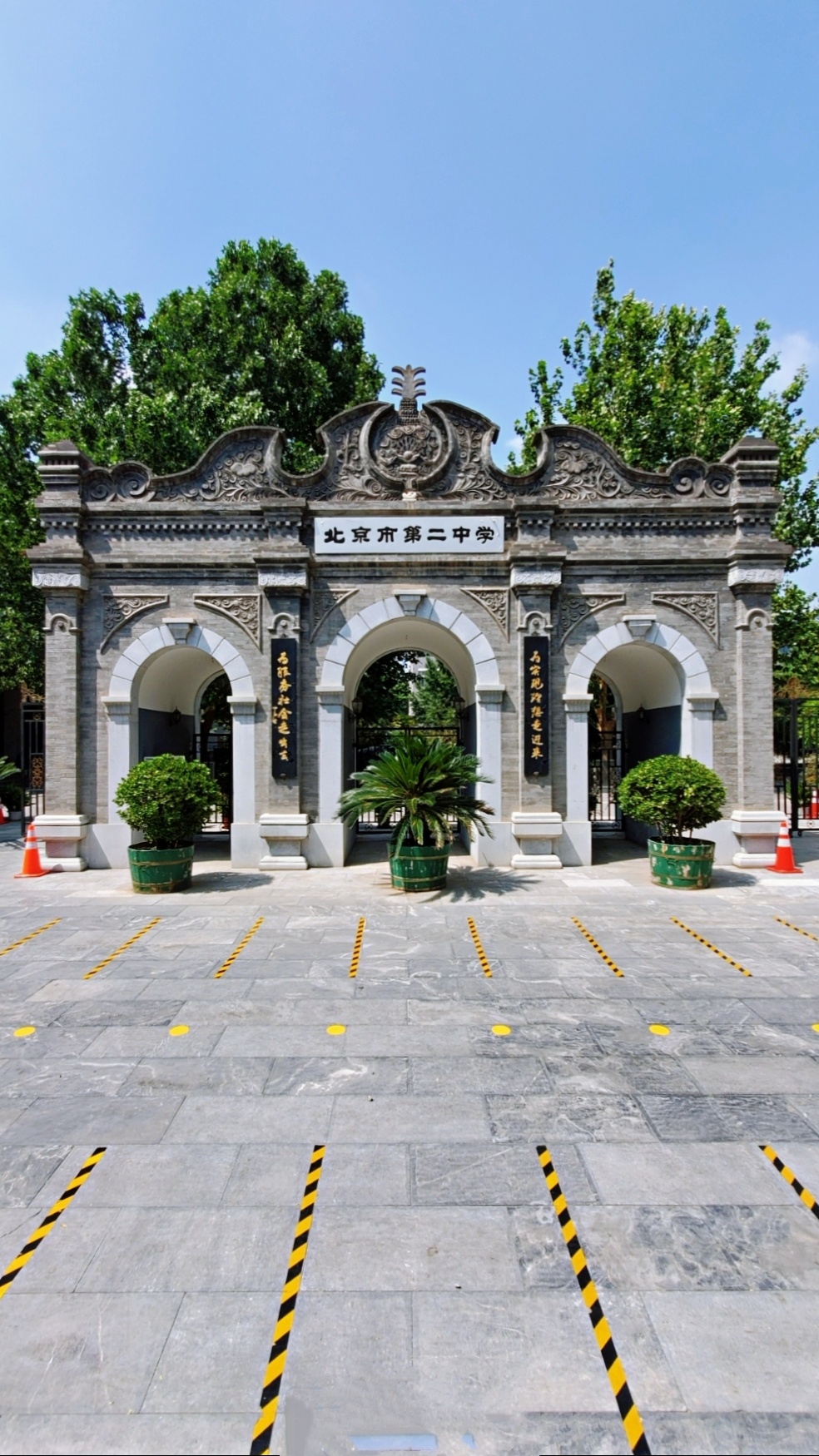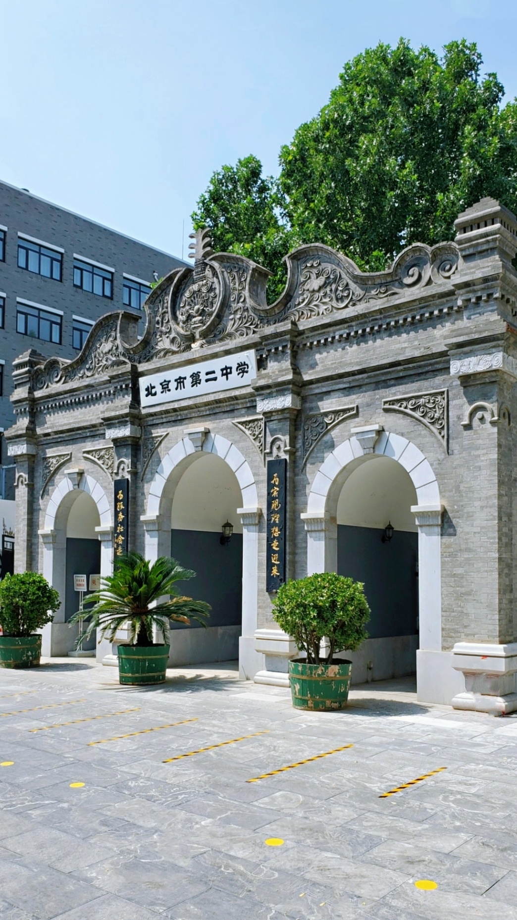 北京二中前身为清朝左翼宗学,创建于1724年。左翼宗学先后更名为左翼八旗第五初等小学堂、左翼八旗中学堂、京师公立第二中学校、北平市立第二中学。1951年,定名为北京市第二中学,1952年,被评为北京市重点中学。清代左翼八旗中学堂,1936年迁入内务部街13号。段祺瑞掌管北洋政府时,其内务部办公行署设在今内务部街13号,即今天的北京市第二中学校址,该校的拱形大门便是当年北洋政府内务部公署的大门。如今历经近百年的变迁,当年内务部公署的建筑因多次改扩建而消失,只有拱形大门依然保存着。