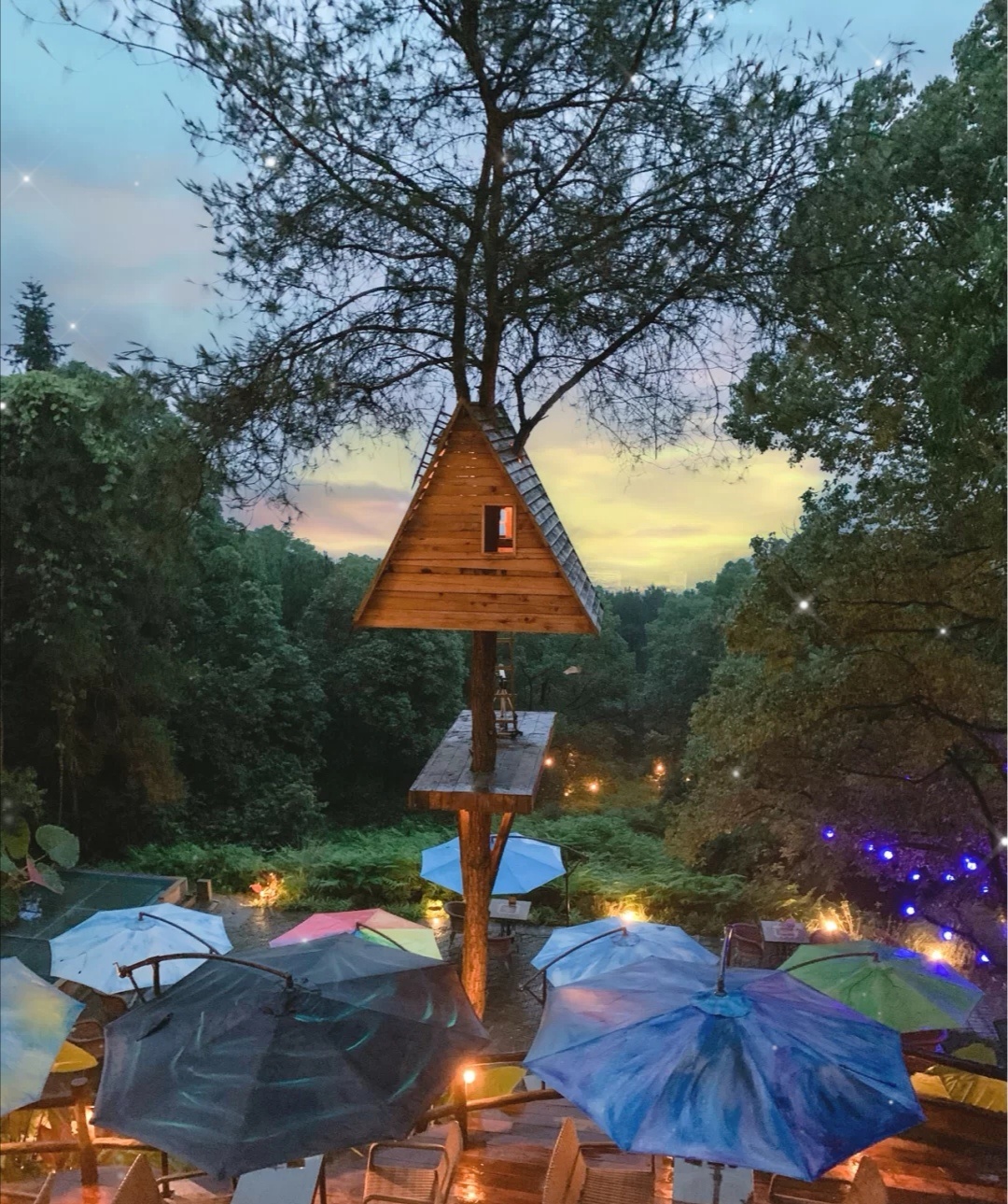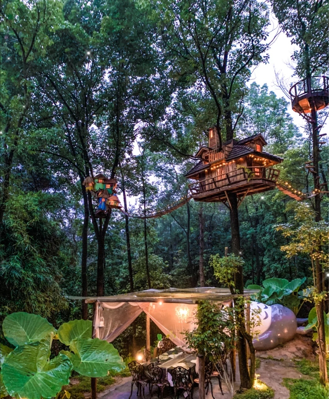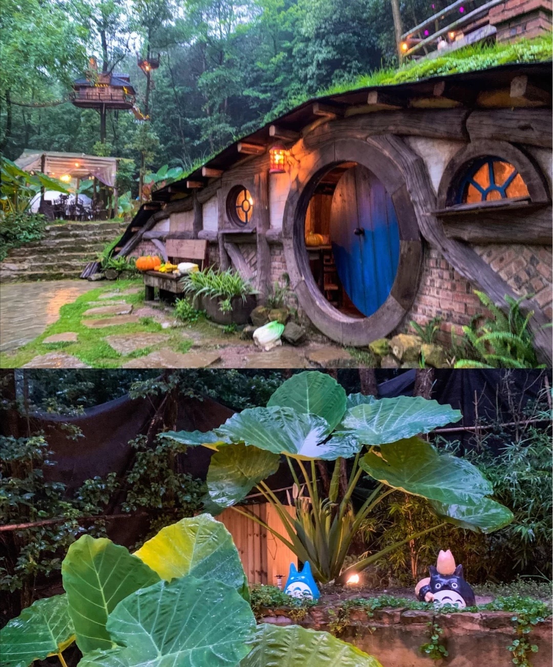 💙这个地方非常美,门口就有一个很大的龙猫,走进门里面仙雾缭绕,一条石板小道,旁边都是绿植和花,还有小桥流水,霍比特小屋和树屋也是怎么拍怎么好看,完全戳中我的少女心💜