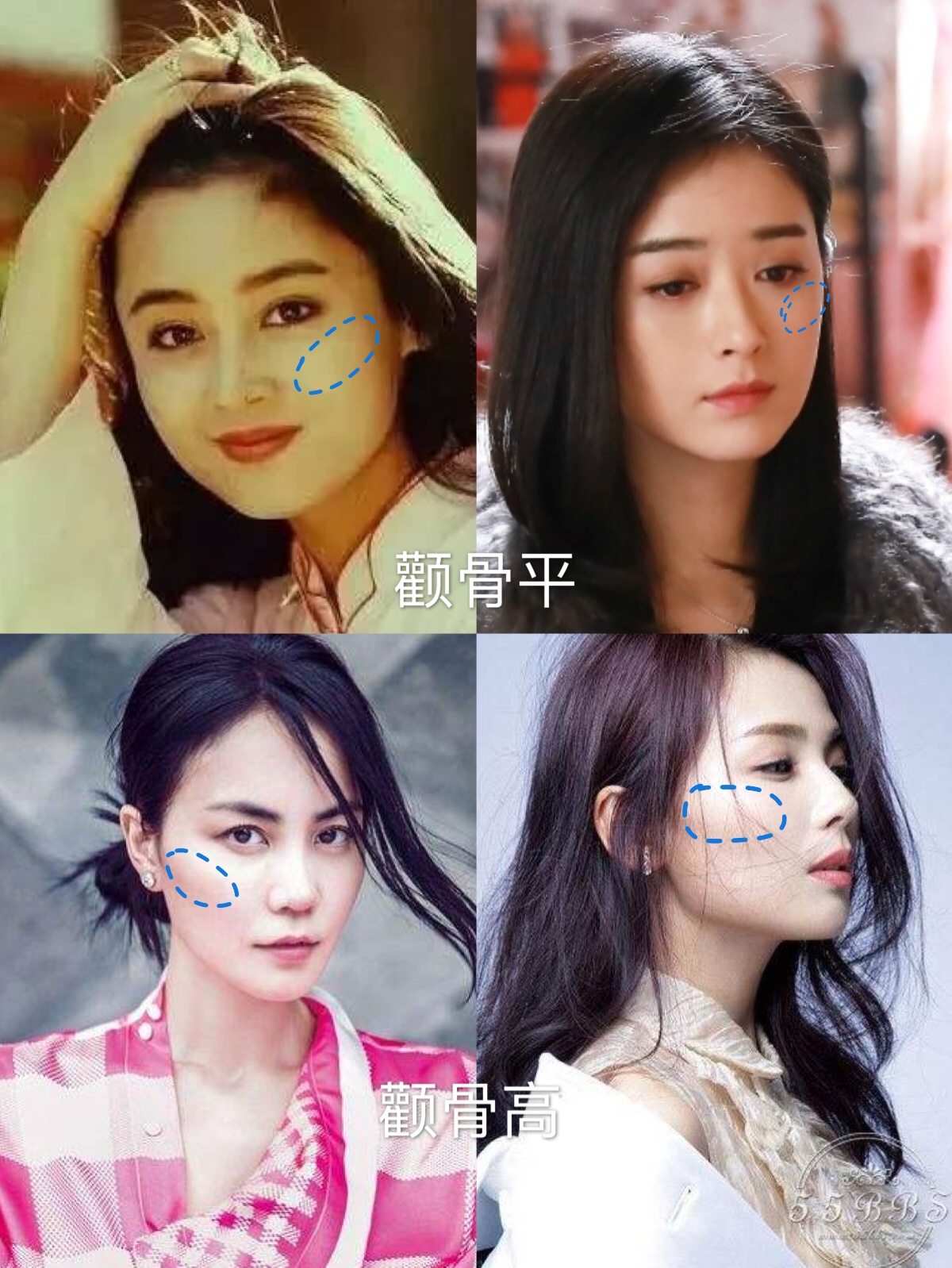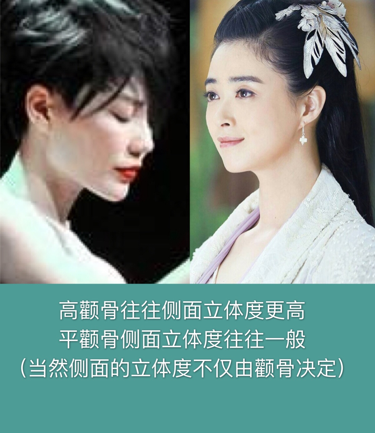 2️⃣一般颧骨高,似乎出现颧弓外扩,进而太阳穴凹陷,令面部流畅度不佳的情况比较多。而平颧骨更容易搭配一个柔和流畅的面庞。