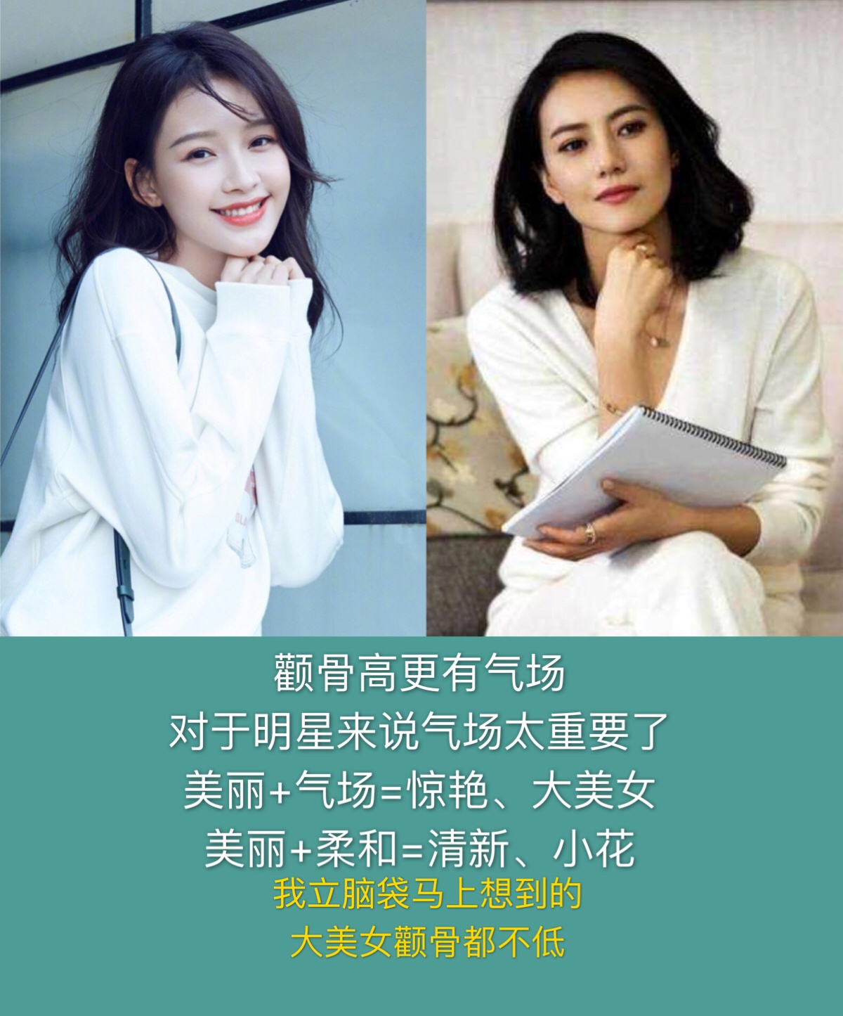 🌿其实很多公认的大美女都是高颧骨或者颧骨不低平。比如,俞飞鸿、高圆圆、王祖贤。反过来,一般被称为小美女,小花的,往往都很柔和,比如孙怡、张雪迎。