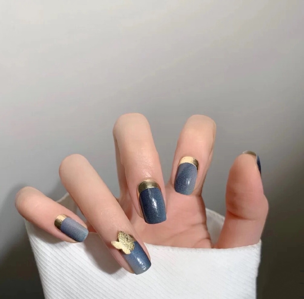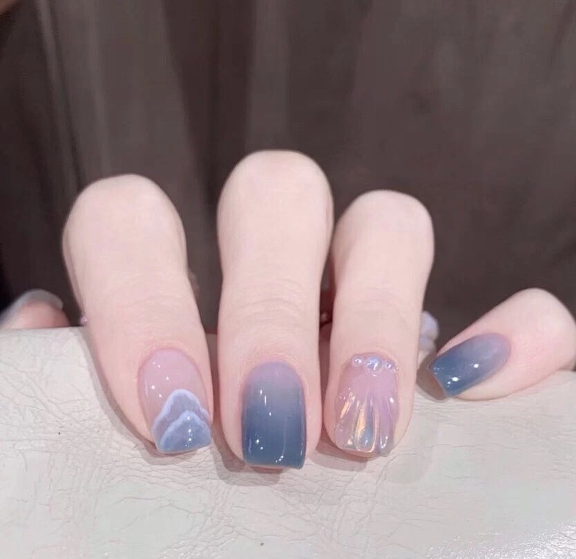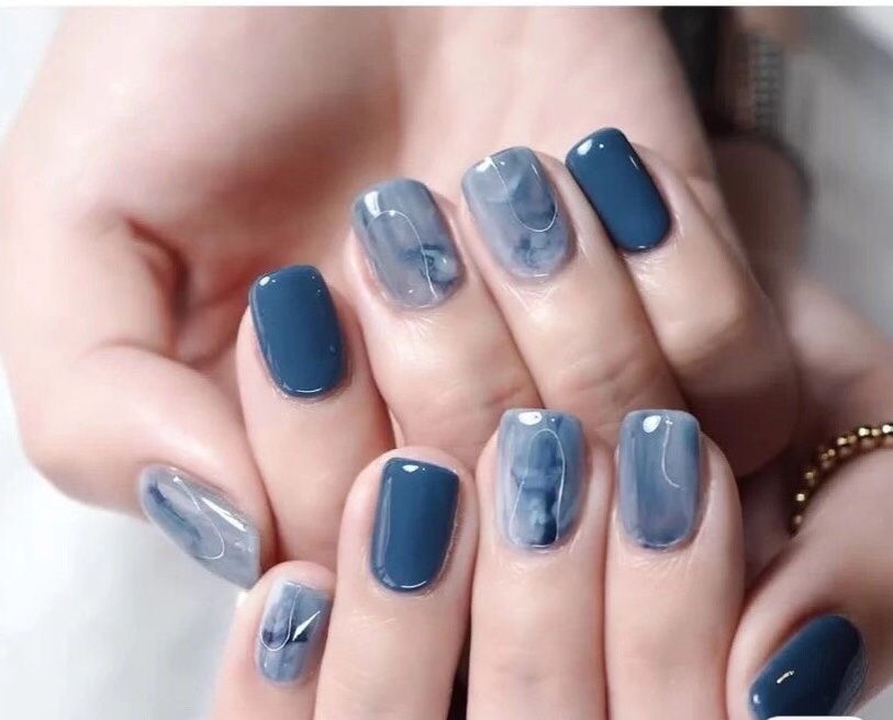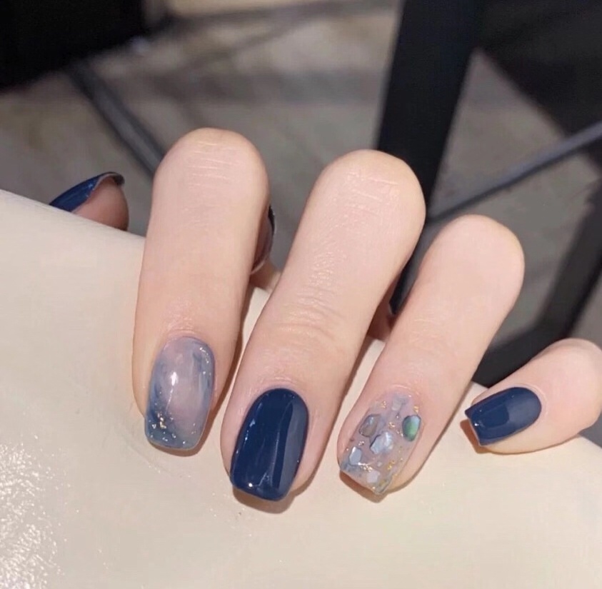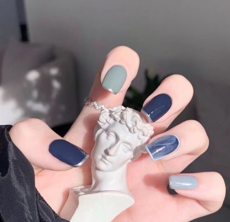 很气质温柔的蓝色美甲啊,指尖藏着大海和天空的蓝