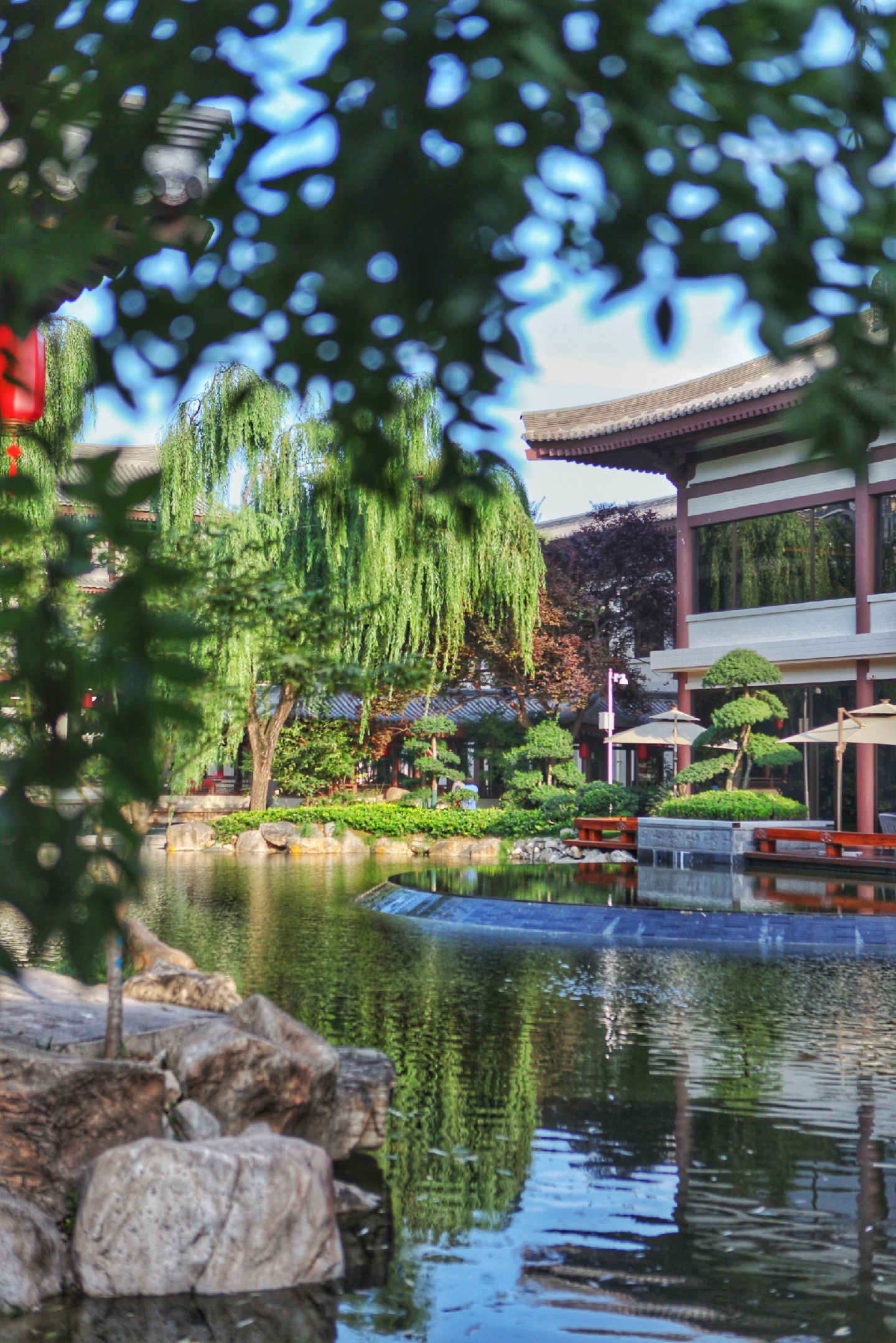 与大雁塔一院之隔的西安唐华华邑酒店,堪称闹市中的一片秘境。酒店主打大唐园林风,环绕壁画、亭台楼阁、小桥流水,还有院子里闲庭信步的孔雀,无处不体现着浓墨重彩的“中国风”。酒店设计出自著名建筑设计师张锦秋之手,陕历博、长安塔、芙蓉园都是她的代表作。如果想在西安体验最“唐风”的酒店,唐华华邑堪居首位。