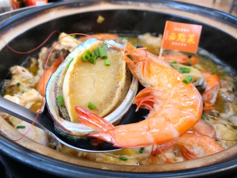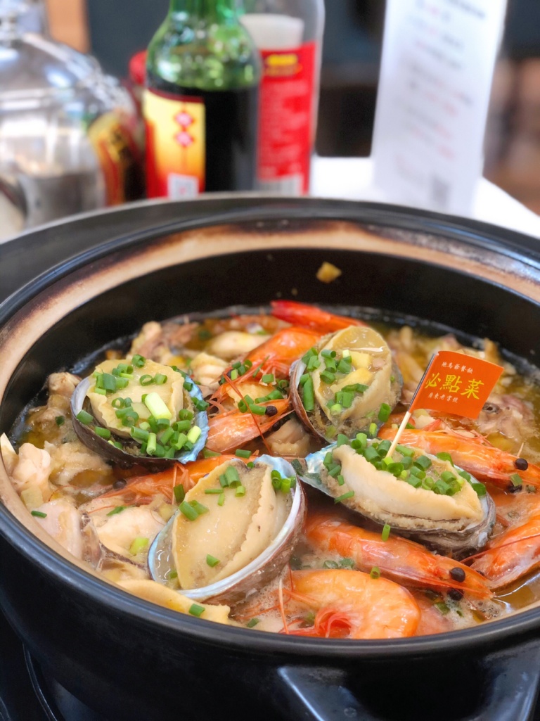 「番禺首创鲍鱼鸡煲」虽说现在的做鲍鱼鸡煲的店也不少,但鲍鱼鸡煲首创非这里莫属了。人气旺也不是虚有其表的,味道的确很赞,无论是鸡肉的肥美程度,还是鲍鱼、鲜虾的鲜嫩多汁,都满屏诱惑🤩