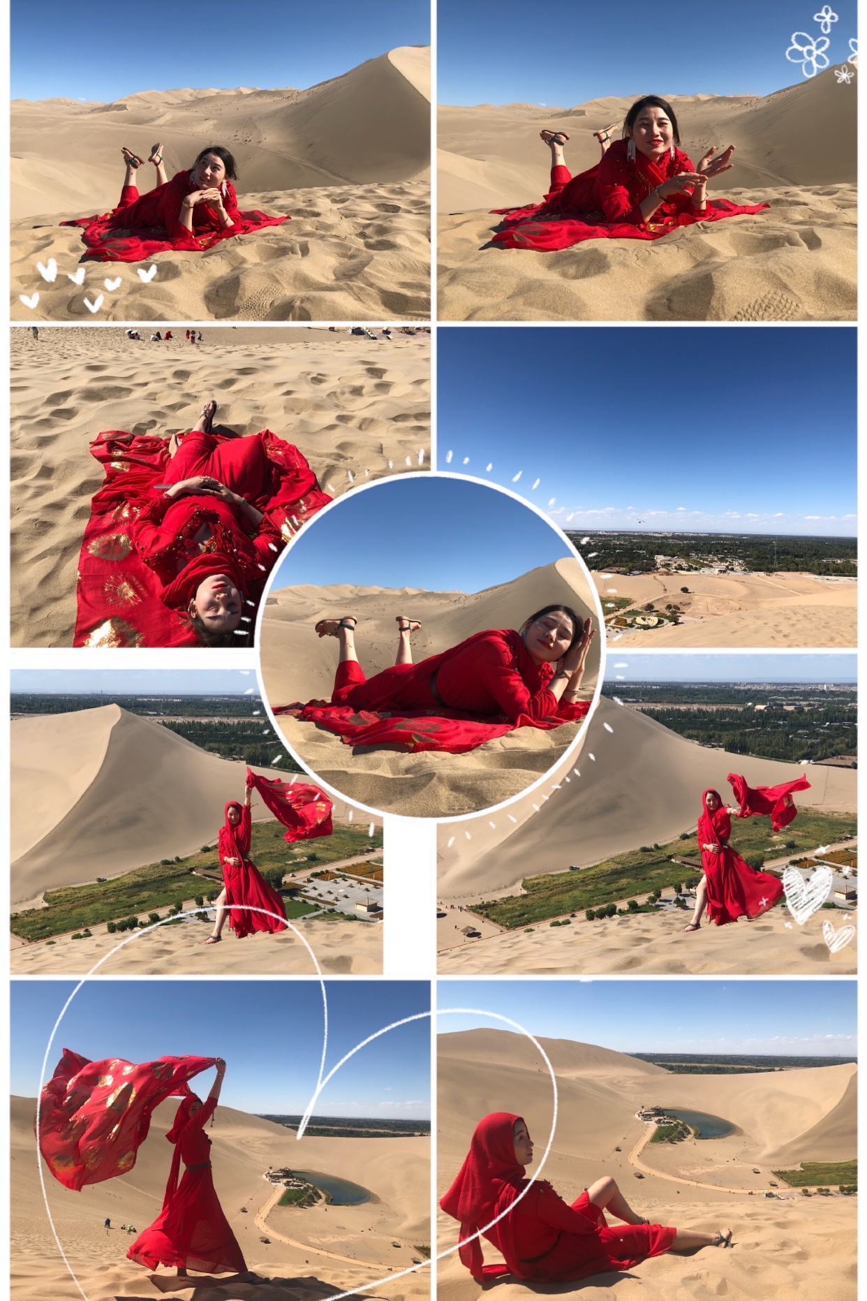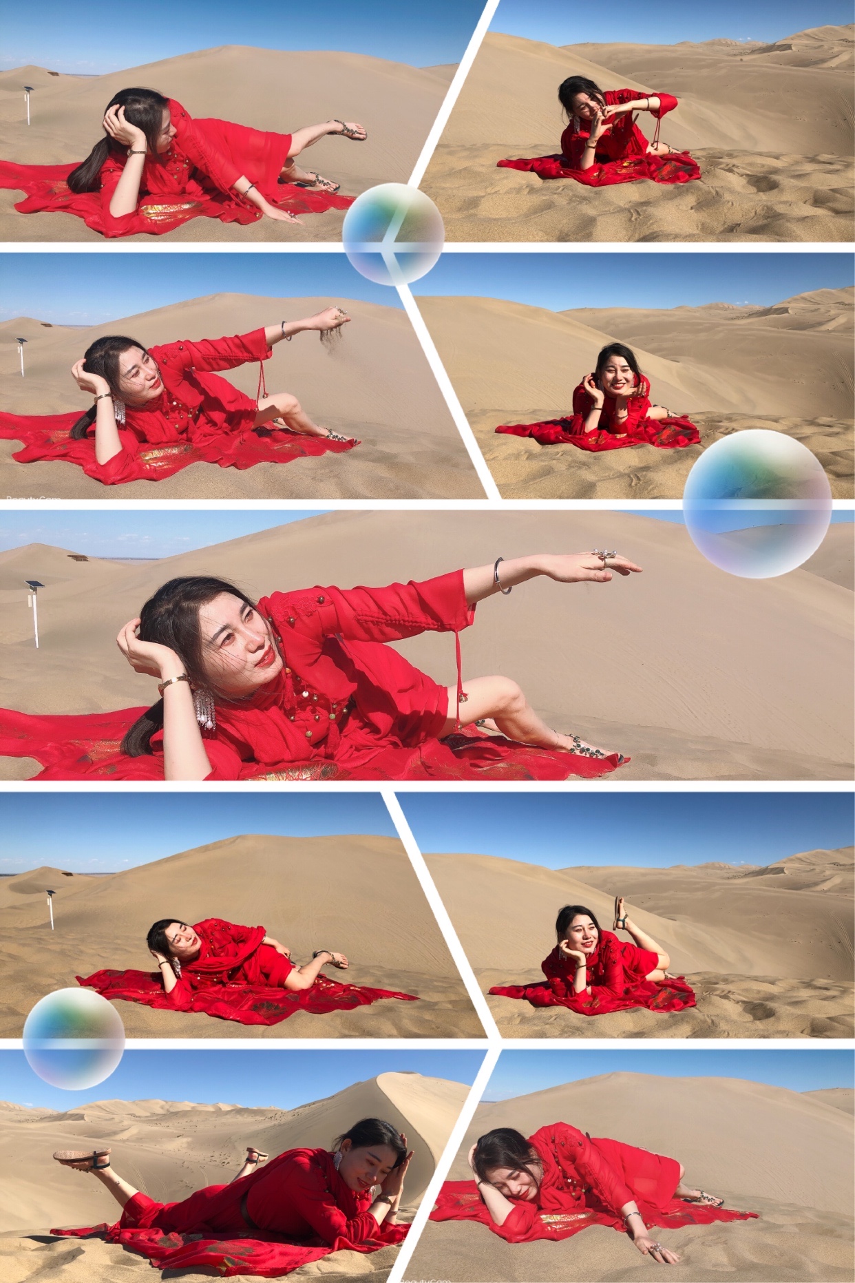 大西北之旅,敦煌大沙漠🏜️之行,建议大去沙漠穿套大红色的裙子👗,拍出来的照片特别漂亮,