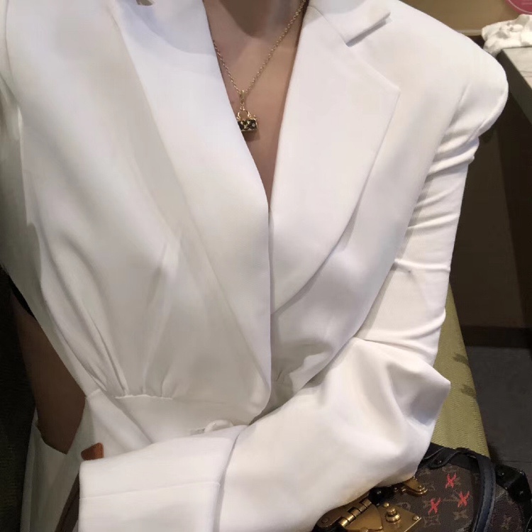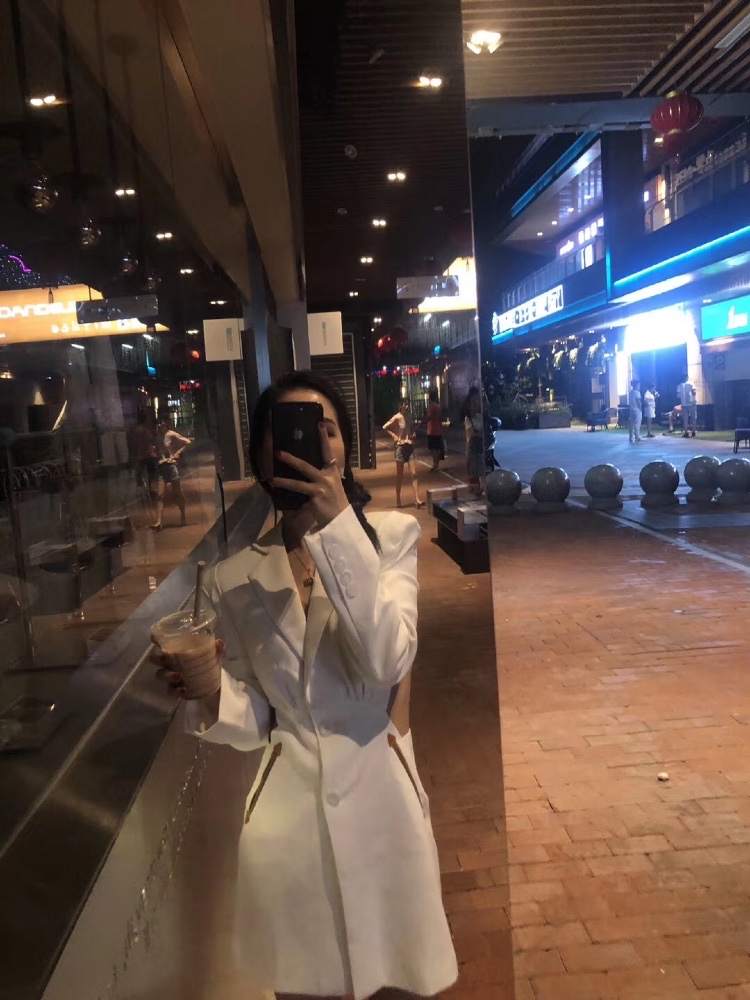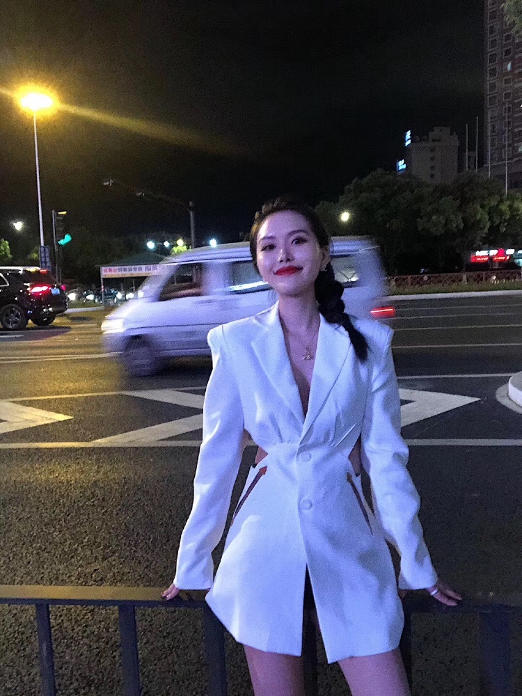 穿搭:今天穿的是一件非常时尚大气却又性感有个性的白色西装外套裙⚠️