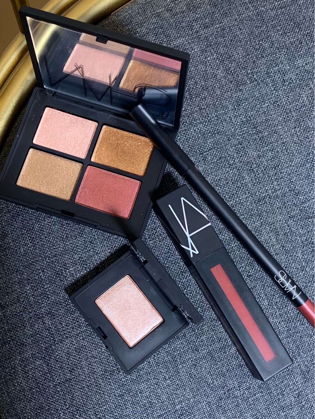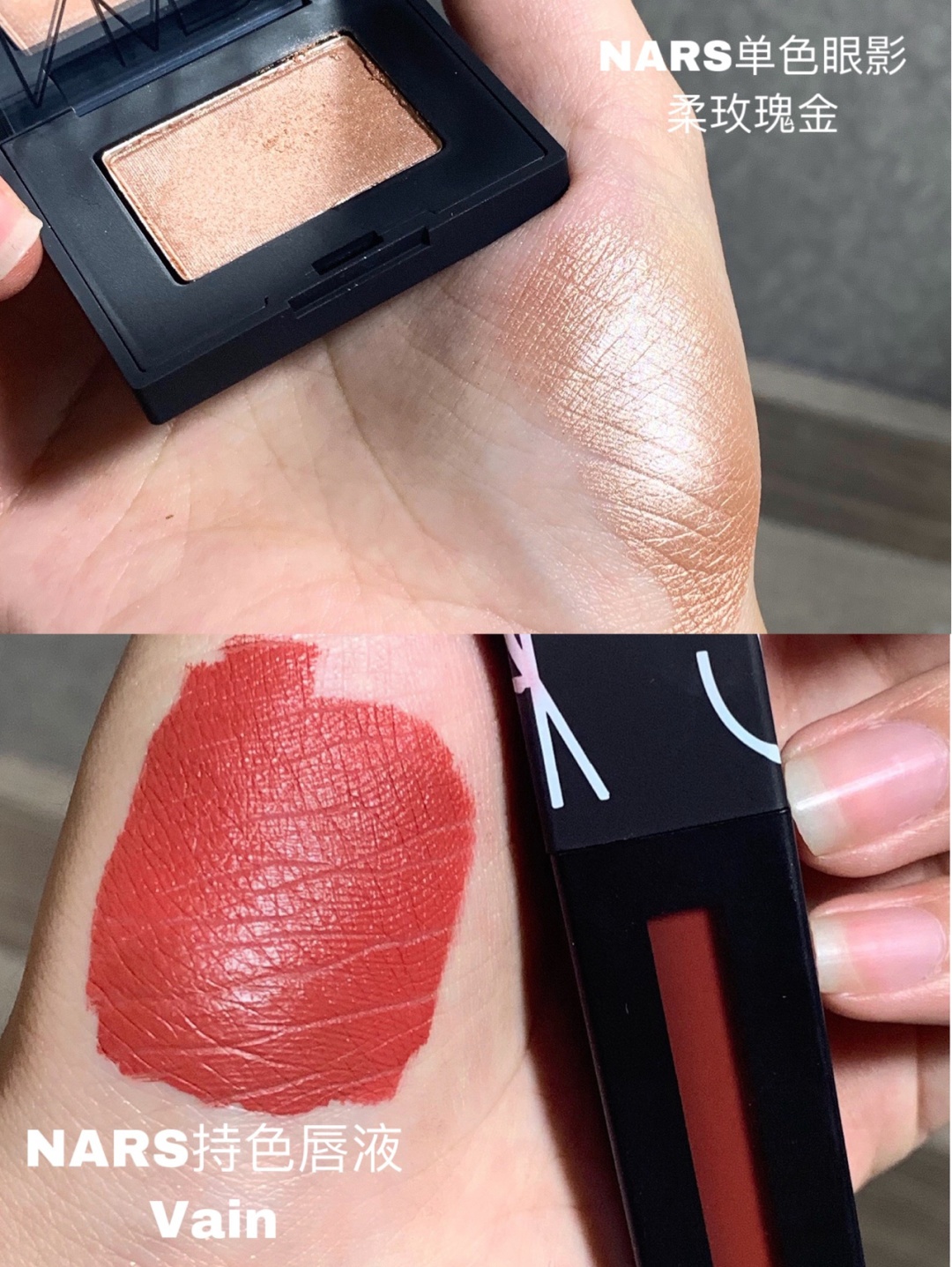 最后用NARS单色眼影 柔玫瑰金提亮眼头位置,眼妆部分就完成啦