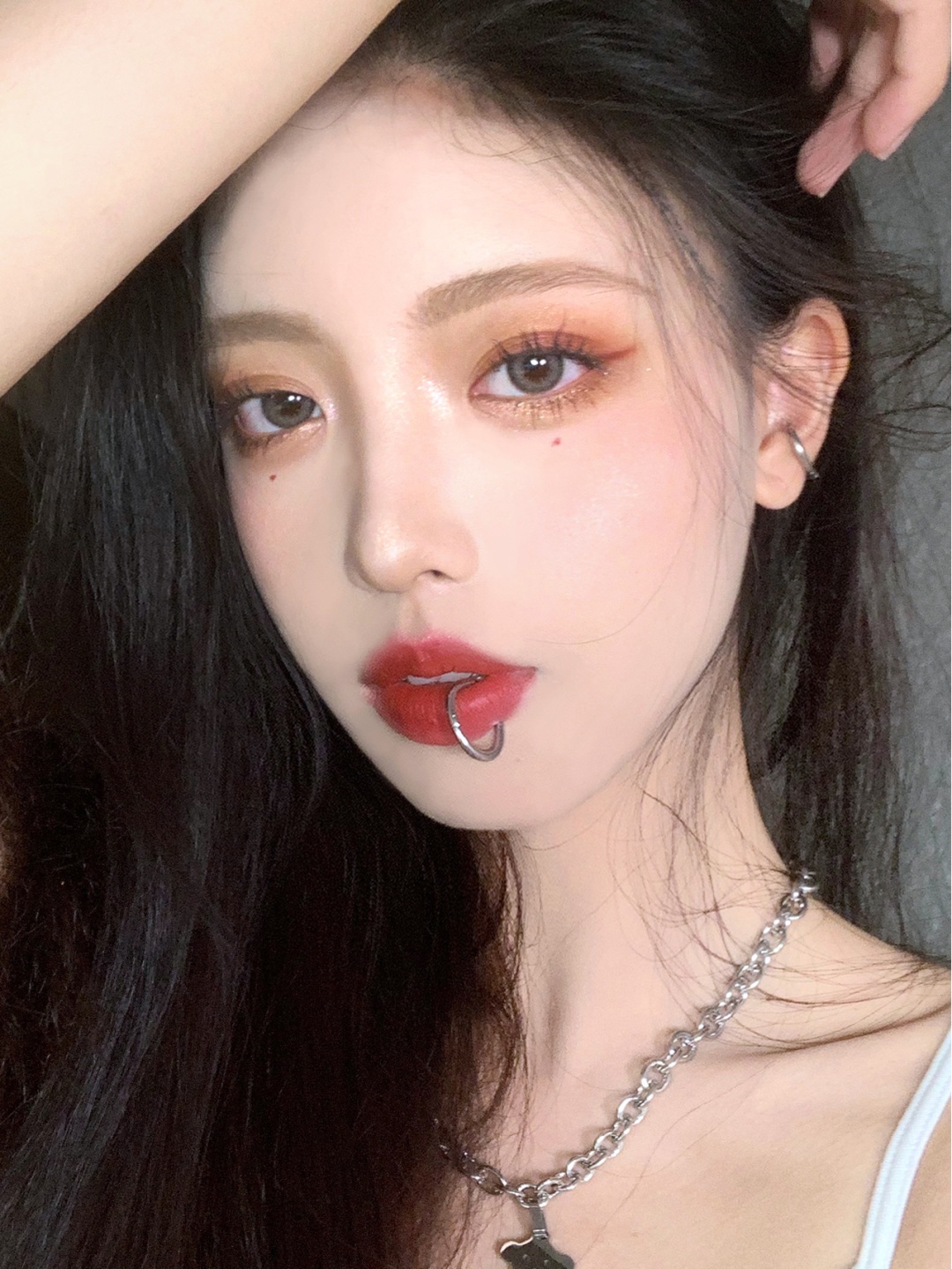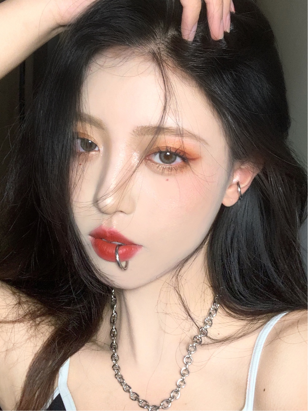 酒红色眼线笔真的点睛之笔,让眼妆看起来楚楚动人滴~眼下点两颗痣会更吸睛,很适合约会和拍照