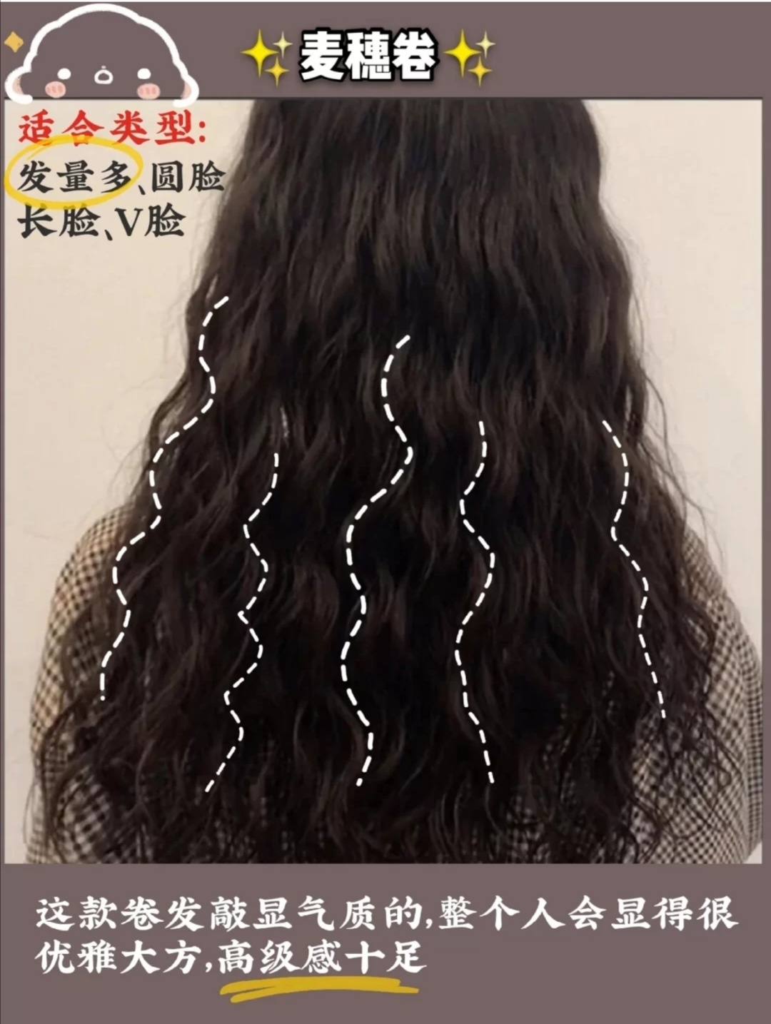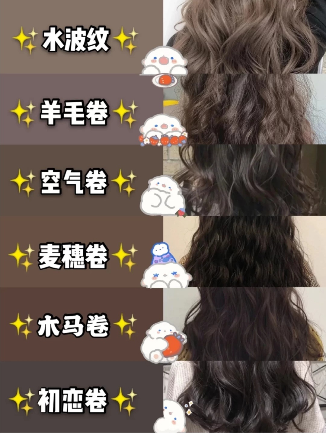 显发量的羊毛卷,学生党的初恋卷,温柔的水波纹,优雅气质的空气卷,高级的麦穗卷,修饰脸型的木马卷