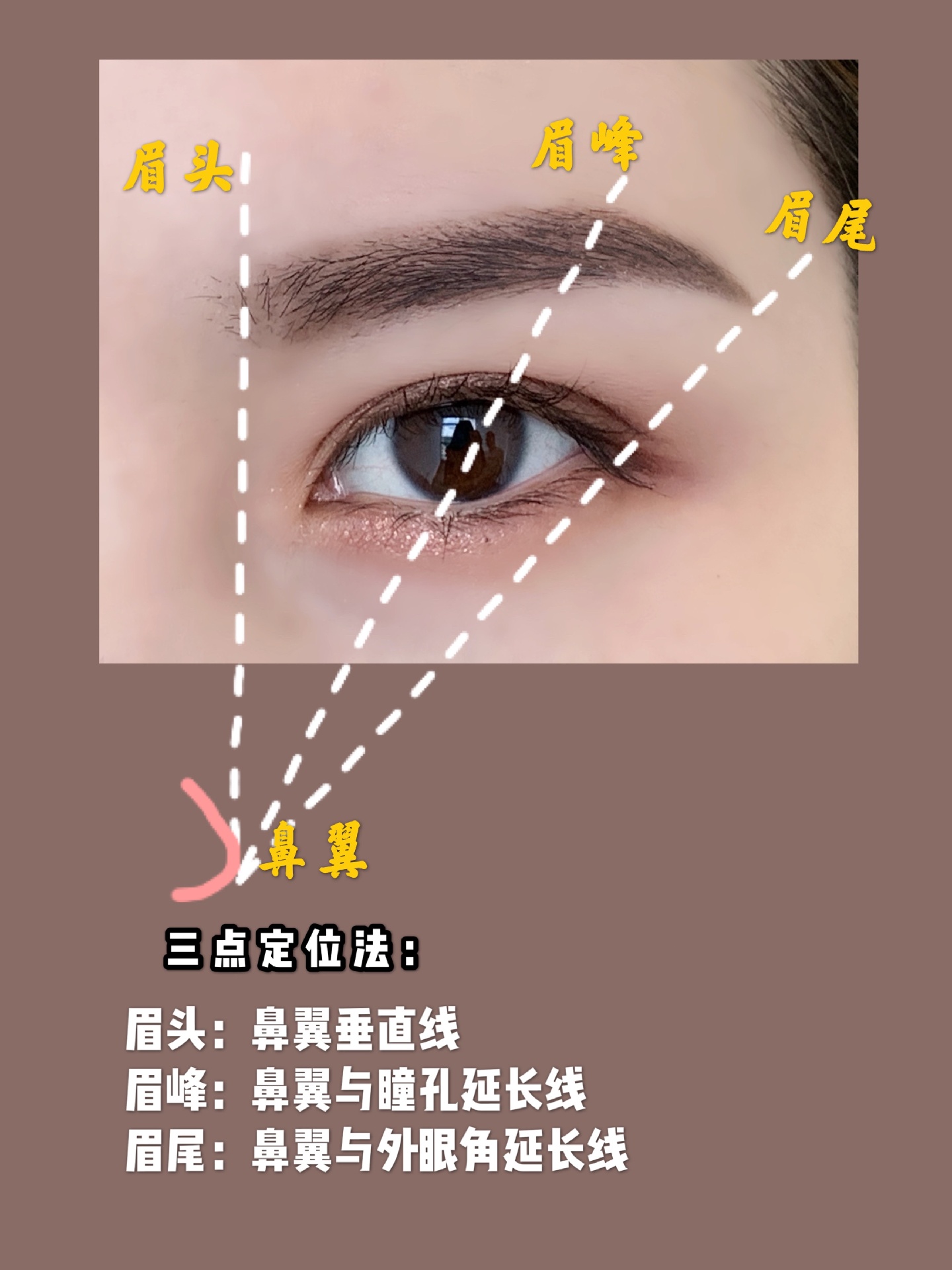 ✅确定眉头、眉峰、眉尾位置,三点定位要准确