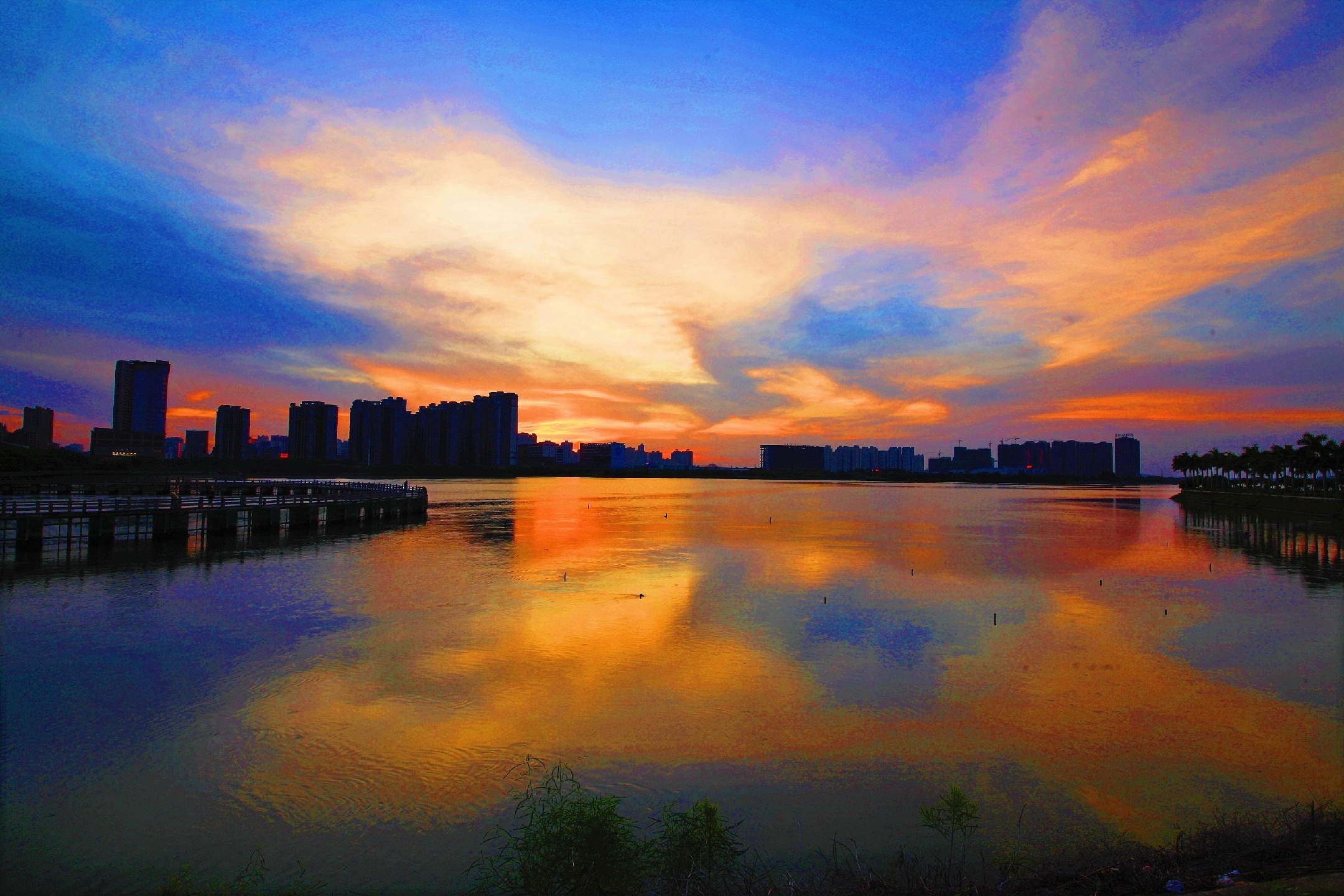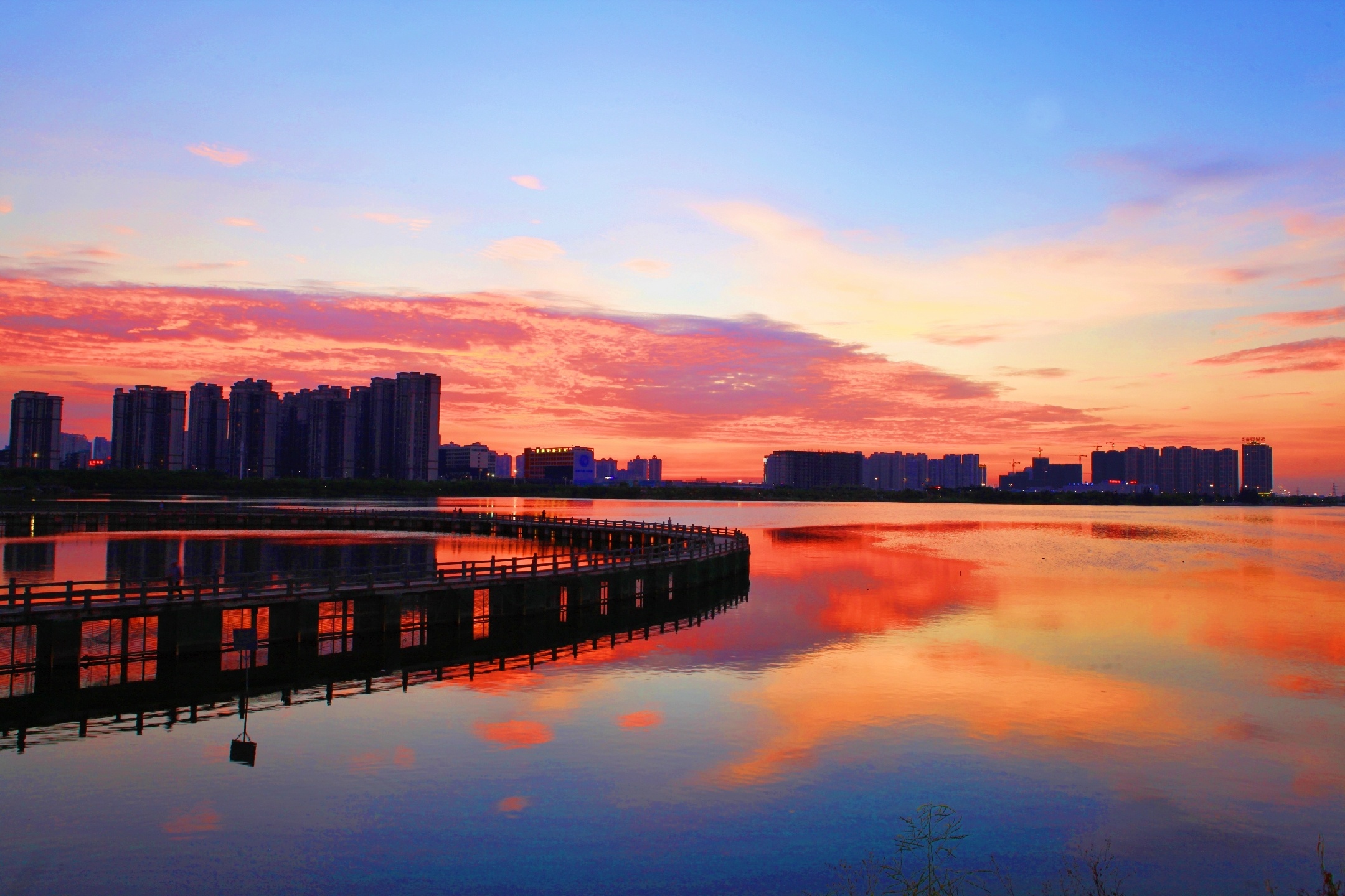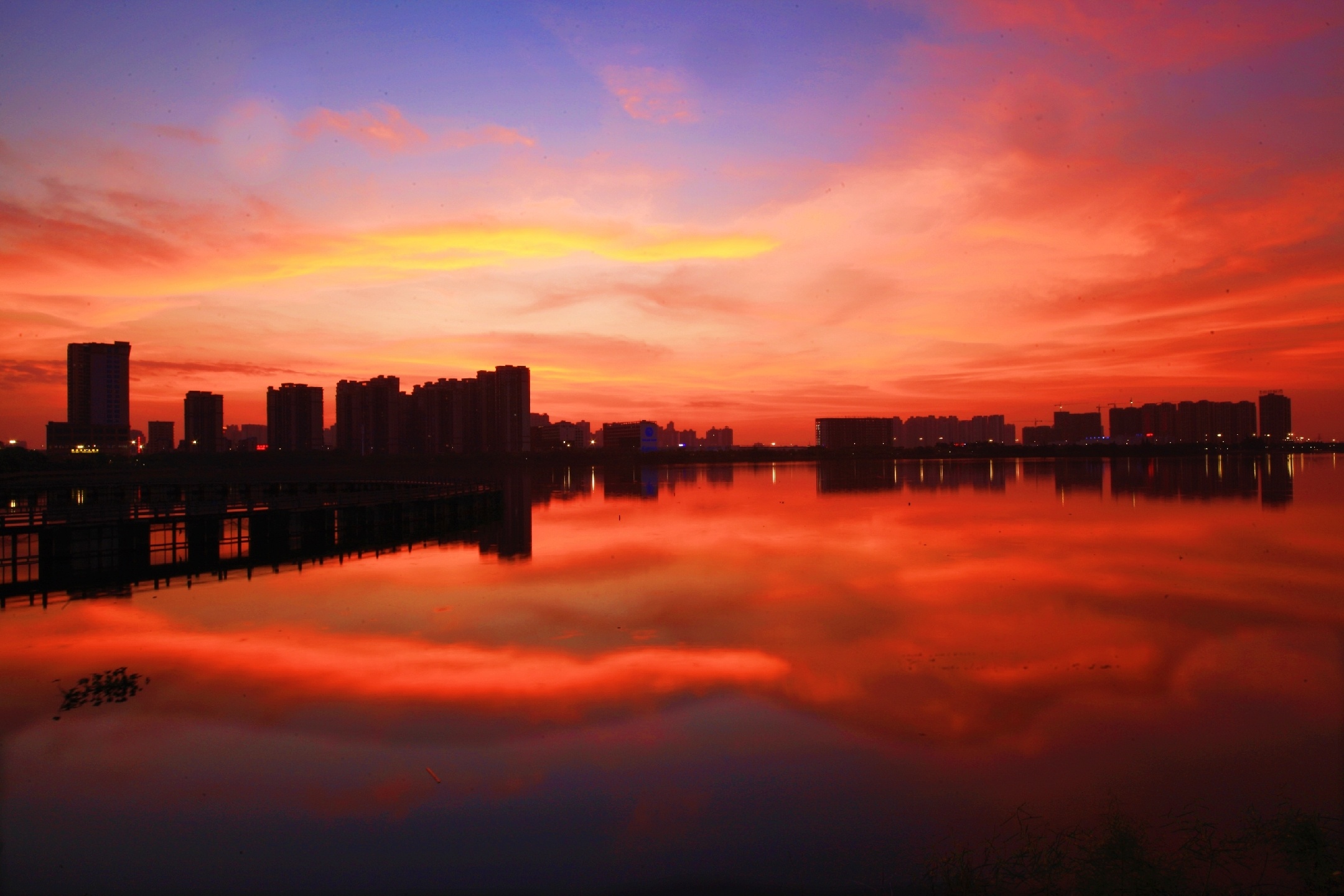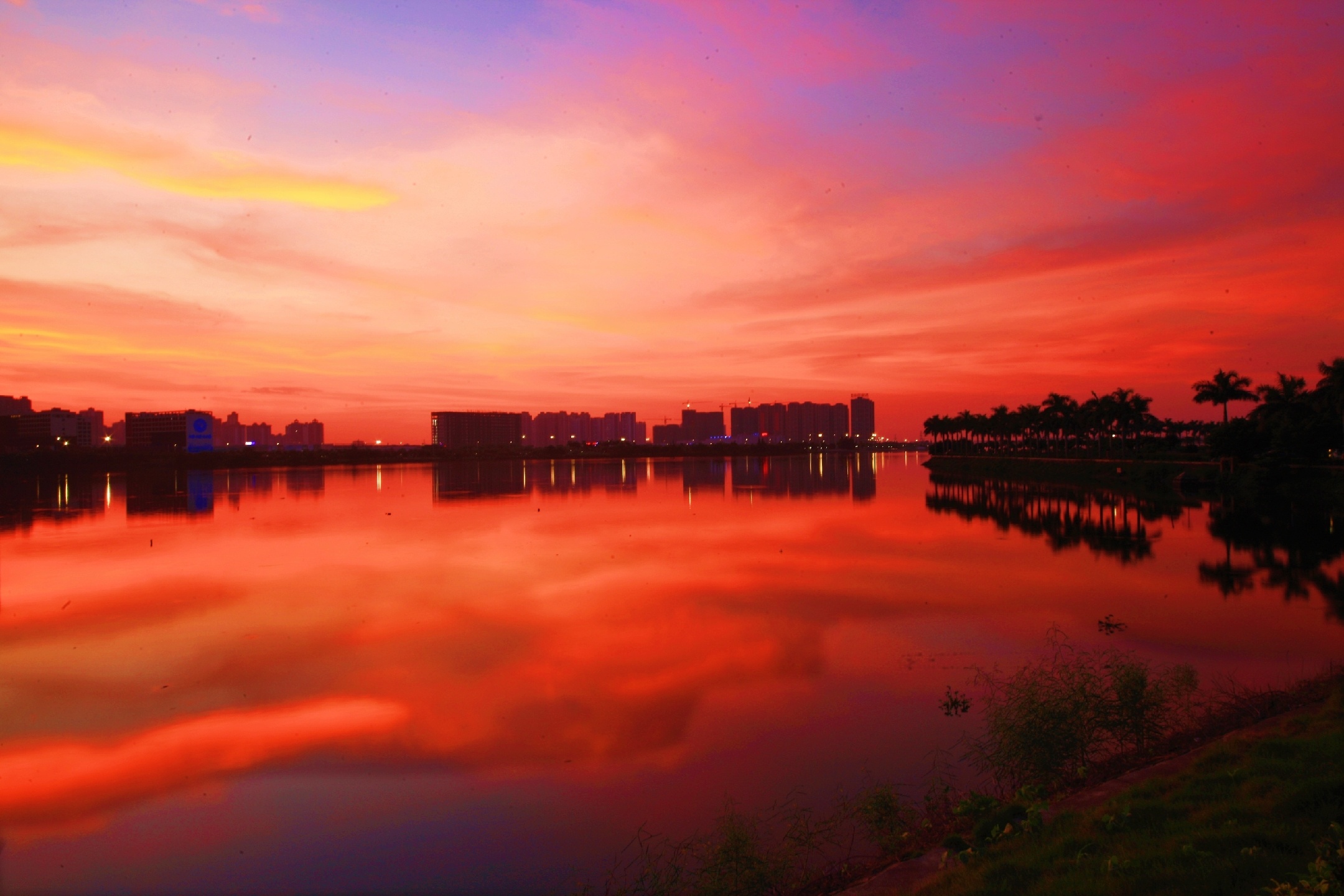 绚烂晚霞~夕阳已悄然西沉,上帝挥舞着彩笔把接近湖边的天空逐渐描绘成了绚烂的色彩,成就了一幅如梦如幻,如诗如画 , 令人陶醉的美丽画卷!