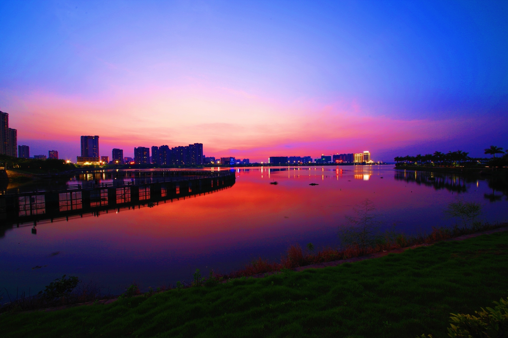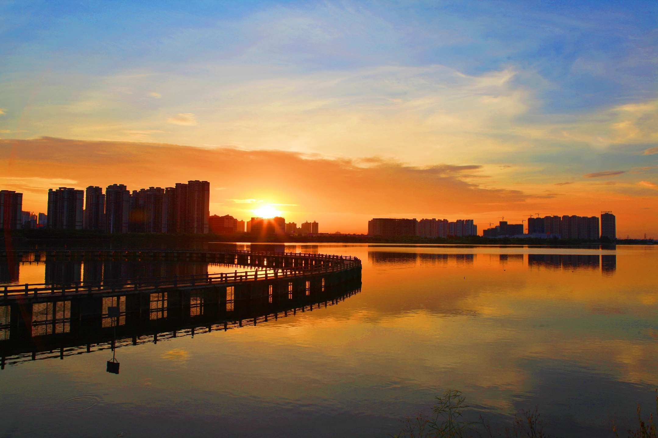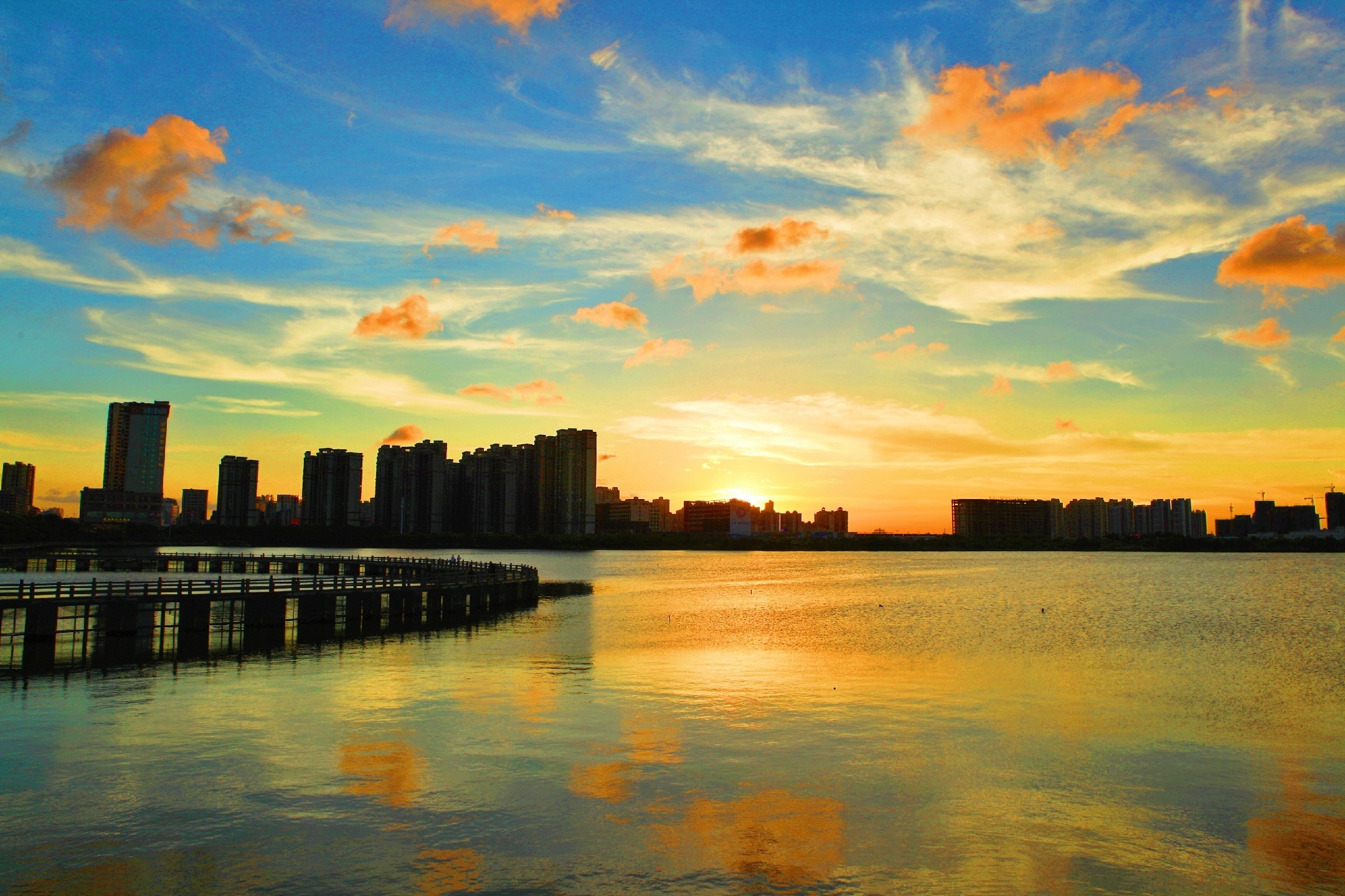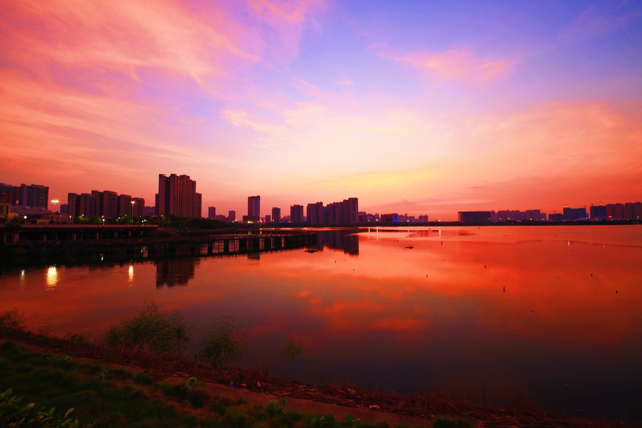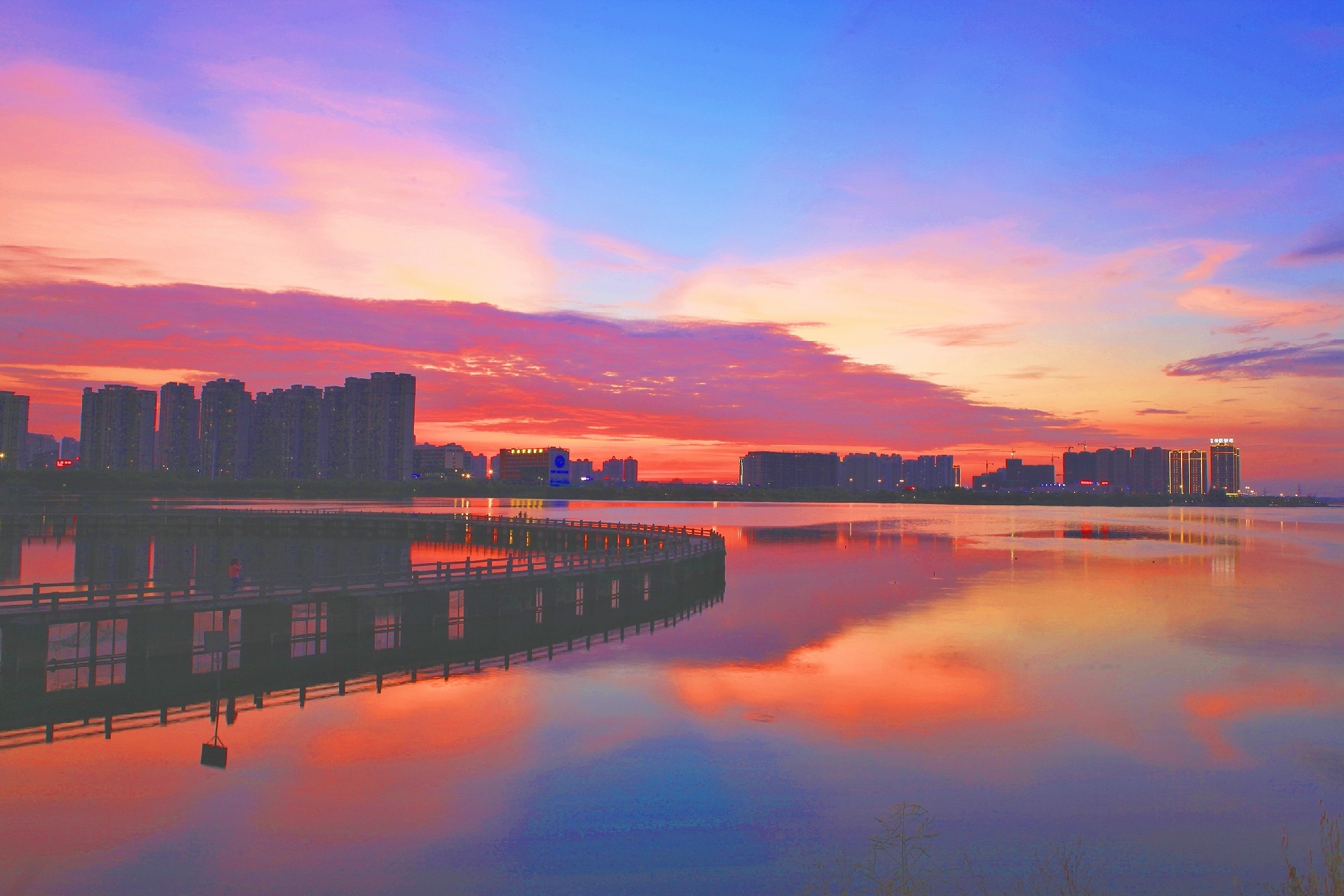 绚烂晚霞~夕阳已悄然西沉,上帝挥舞着彩笔把接近湖边的天空逐渐描绘成了绚烂的色彩,成就了一幅如梦如幻,如诗如画 , 令人陶醉的美丽画卷!