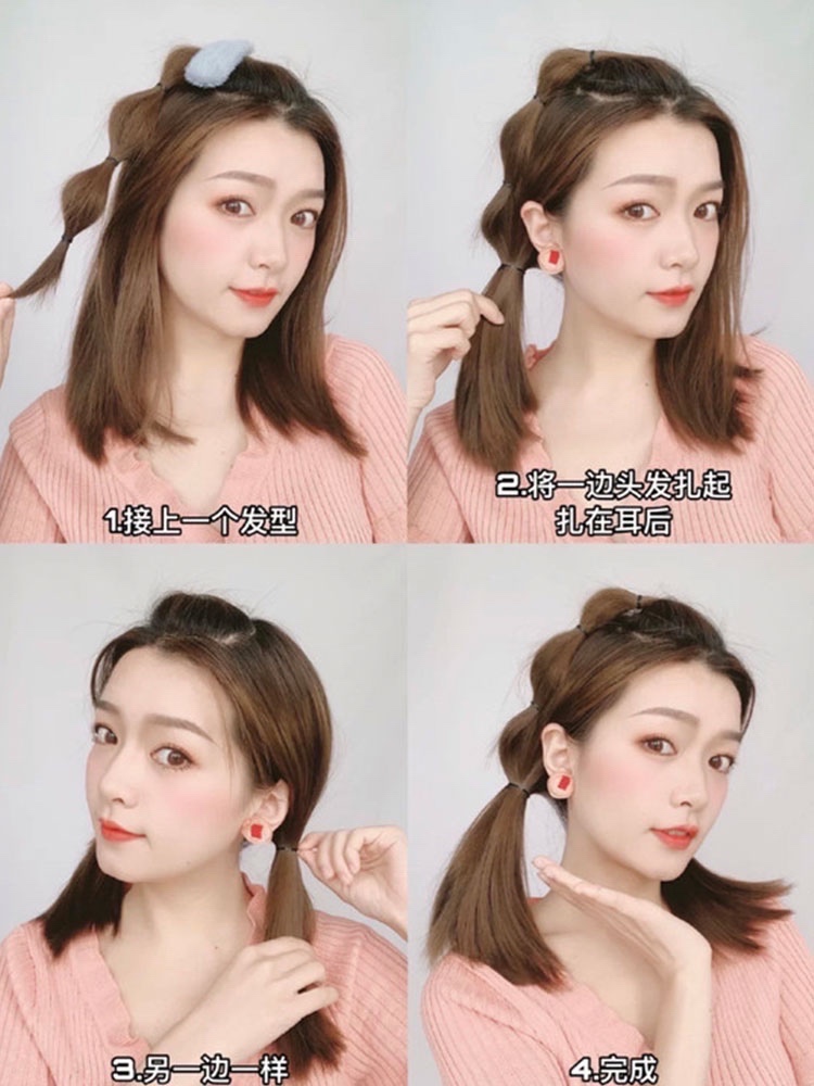 把头顶的头发扎成一个个泡泡的形状好可爱