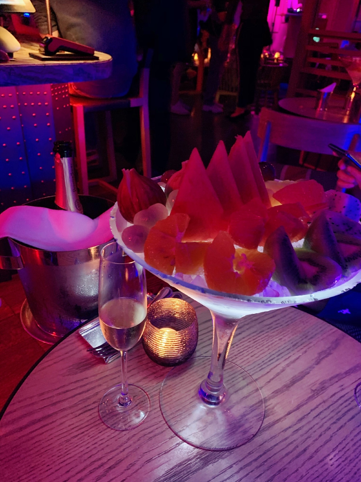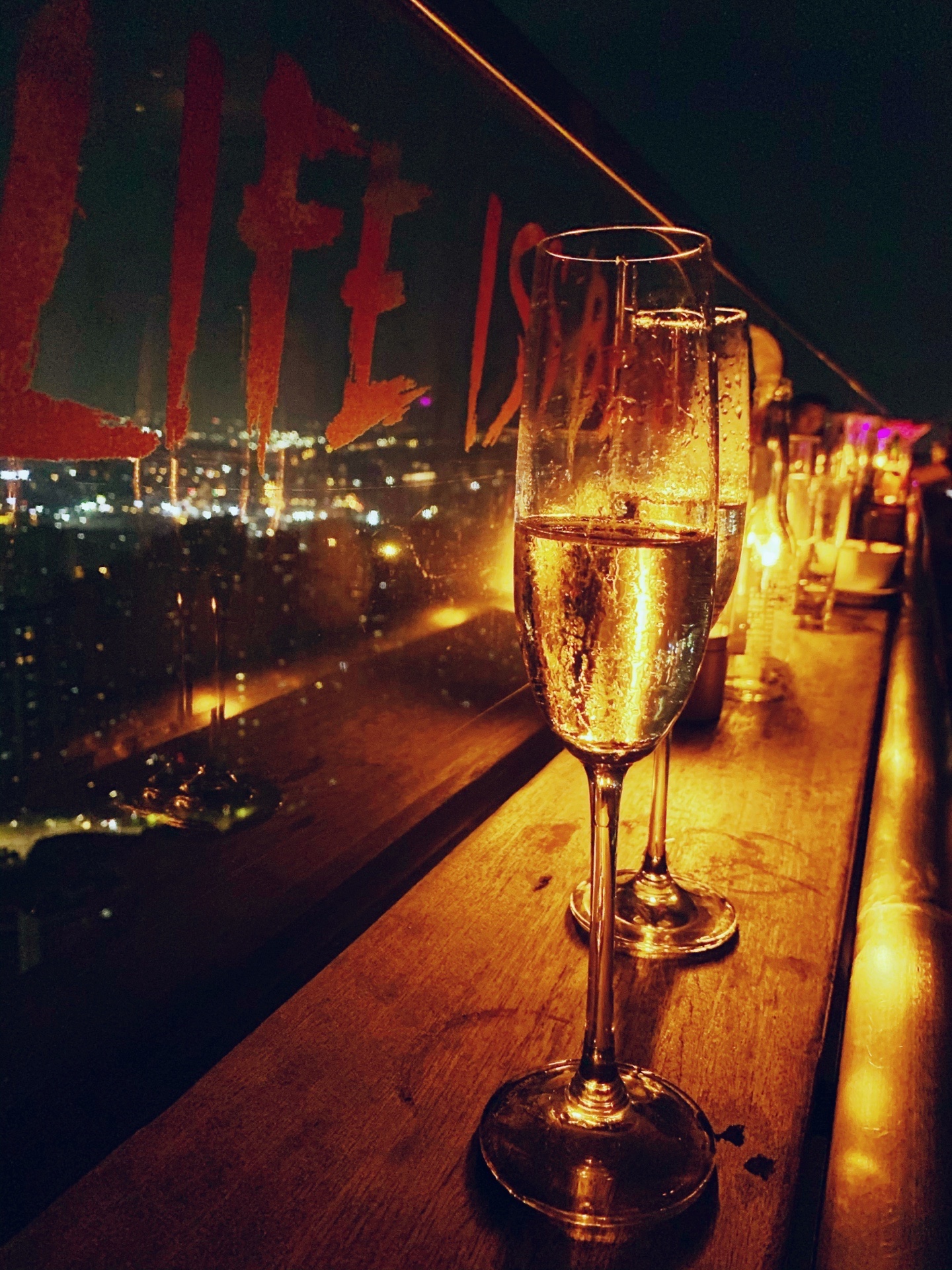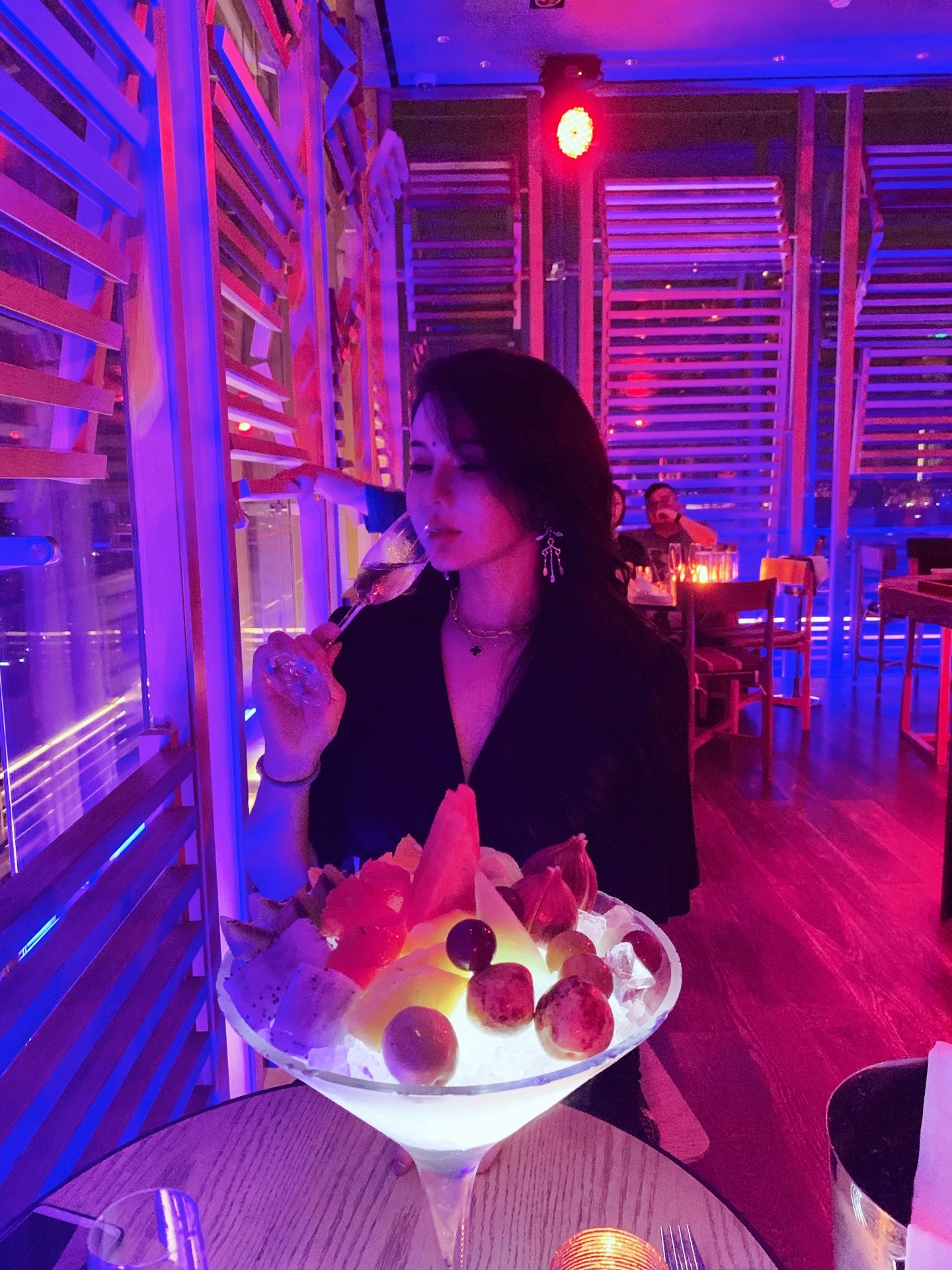 周末去的,几乎满座,DJ打碟处的正大厅小圆桌抵消2000,卡座抵消2500,透明悬空玻璃的景观位小圆桌抵消3千(提前预定,恐高者慎坐);隔壁的吧台及旁边的小圆桌不限低消;现在夏日凉风及抽烟🚬者极力推荐户外,一眼望去犹如能将整个繁华的钱江新城收入眼底,在夜景的衬托下杭城显得格外美腻;户外有两座玻璃房一座是VIP室,一座是卡座抵消,而正中间大屏播放着Victoria's Secret,颜值极高的小哥哥和小姐姐在意识清醒与模糊的边缘诉说心声😳……