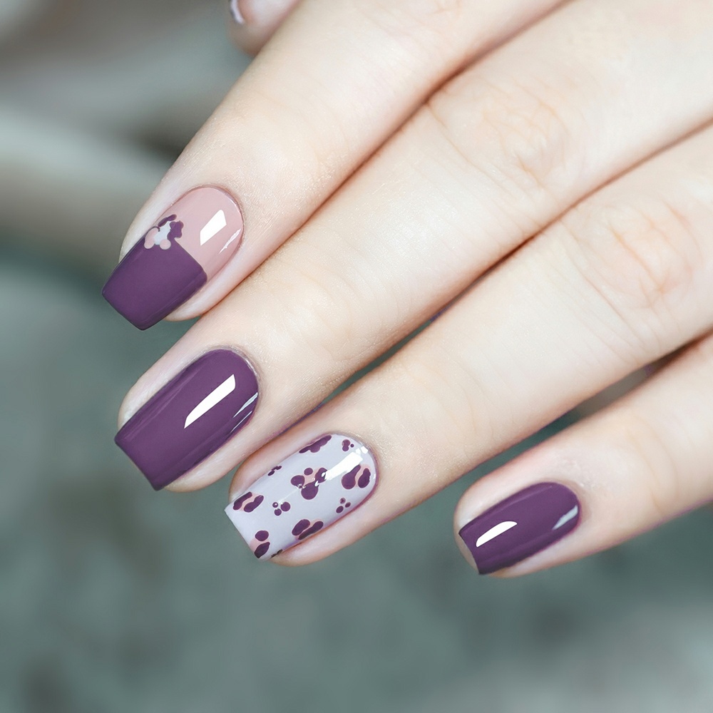 这款紫色的手绘小豹纹美甲