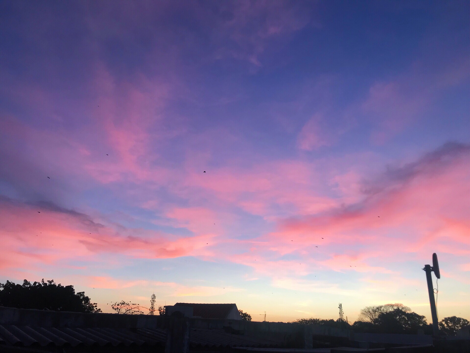 晚霞给单调的天空增添了色彩,让天空变得五彩缤纷。