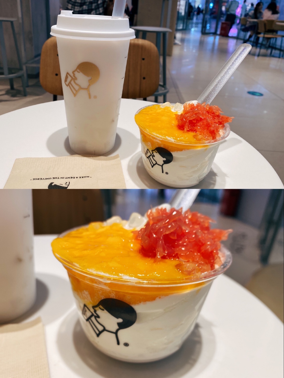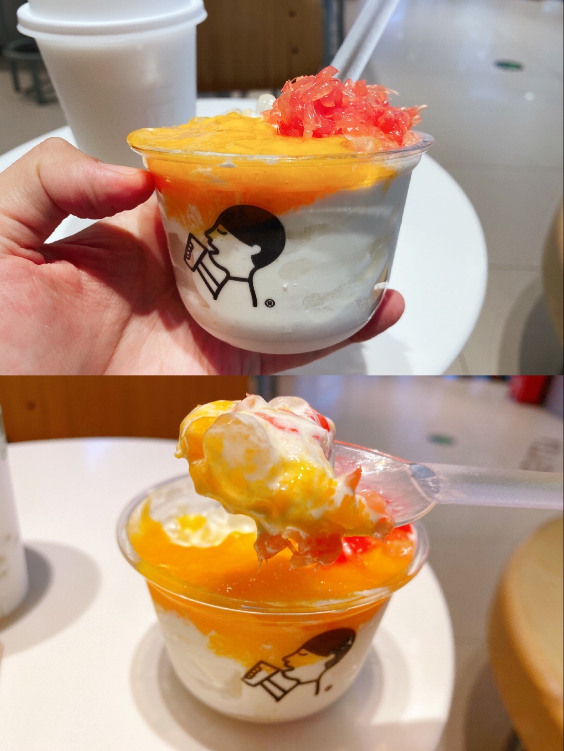 🍦“芒芒甘露雪糕杯”椰子冰淇淋+杨枝甘露的混搭,香滑的冰淇淋上盖满一层脆波波、芒果、柚子肉,太诱人了,13元。
