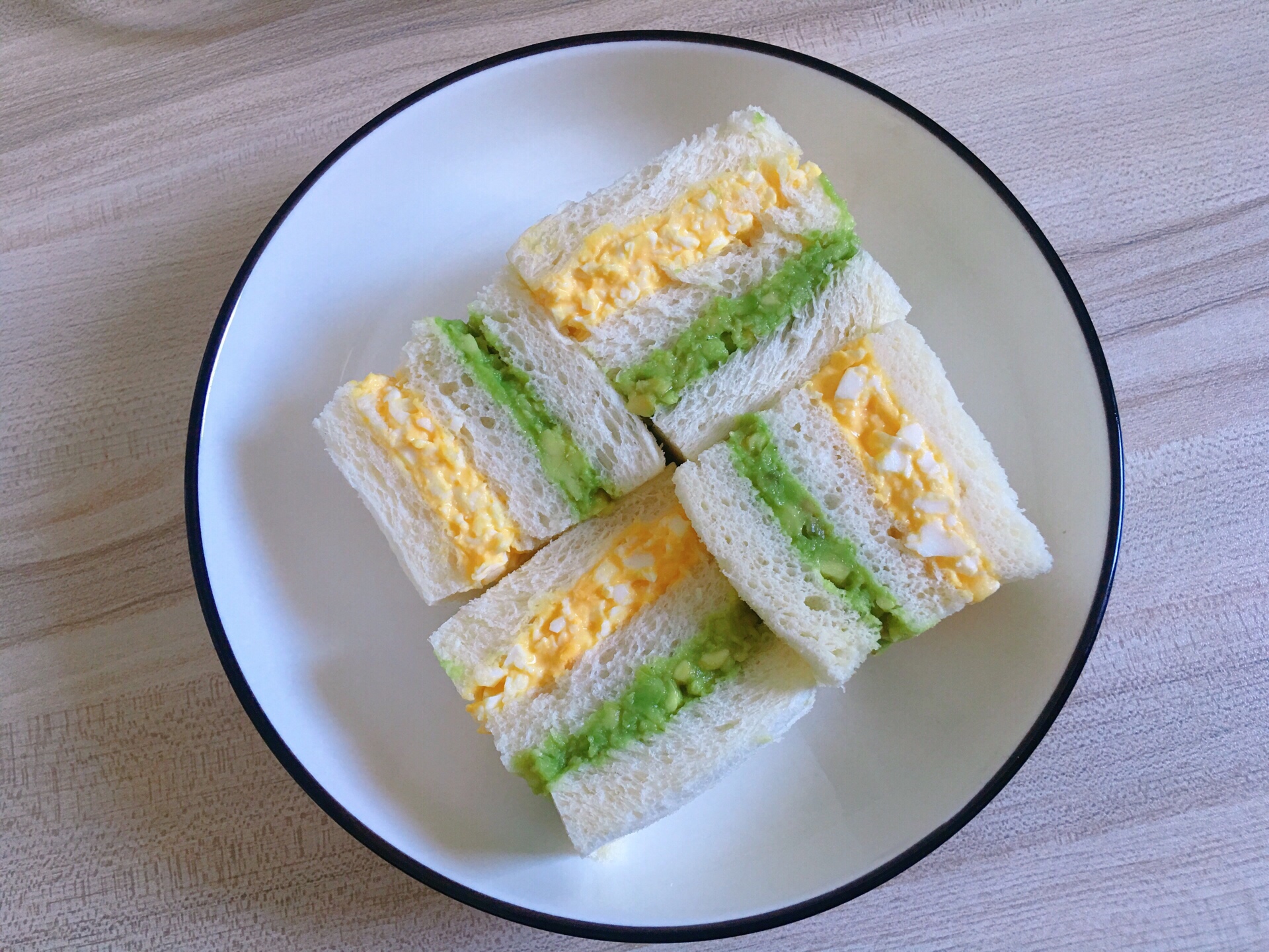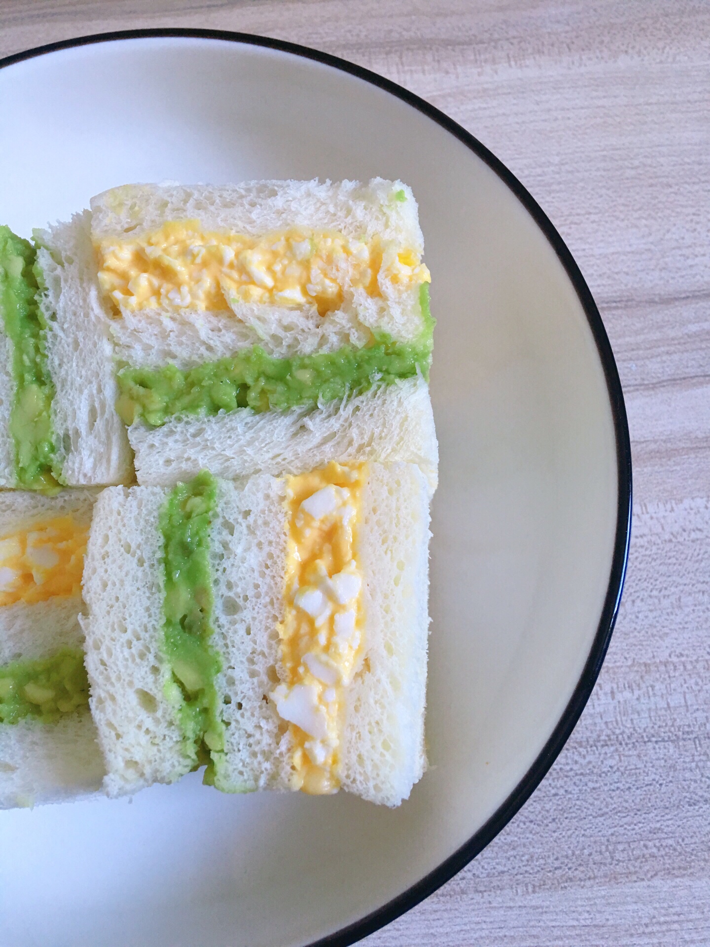 3⃣吐司去边,一片抹上芝士鸡蛋沙拉,一片抹上午牛油果酱,叠在一起,再盖上一片吐司,最后切开就好了~真的简单又好吃!一定要试试啊😊#早安,我的元气早餐##宅家晒美食##自制美食##减脂减肥吃这些#@MT小助手 @MT情报局