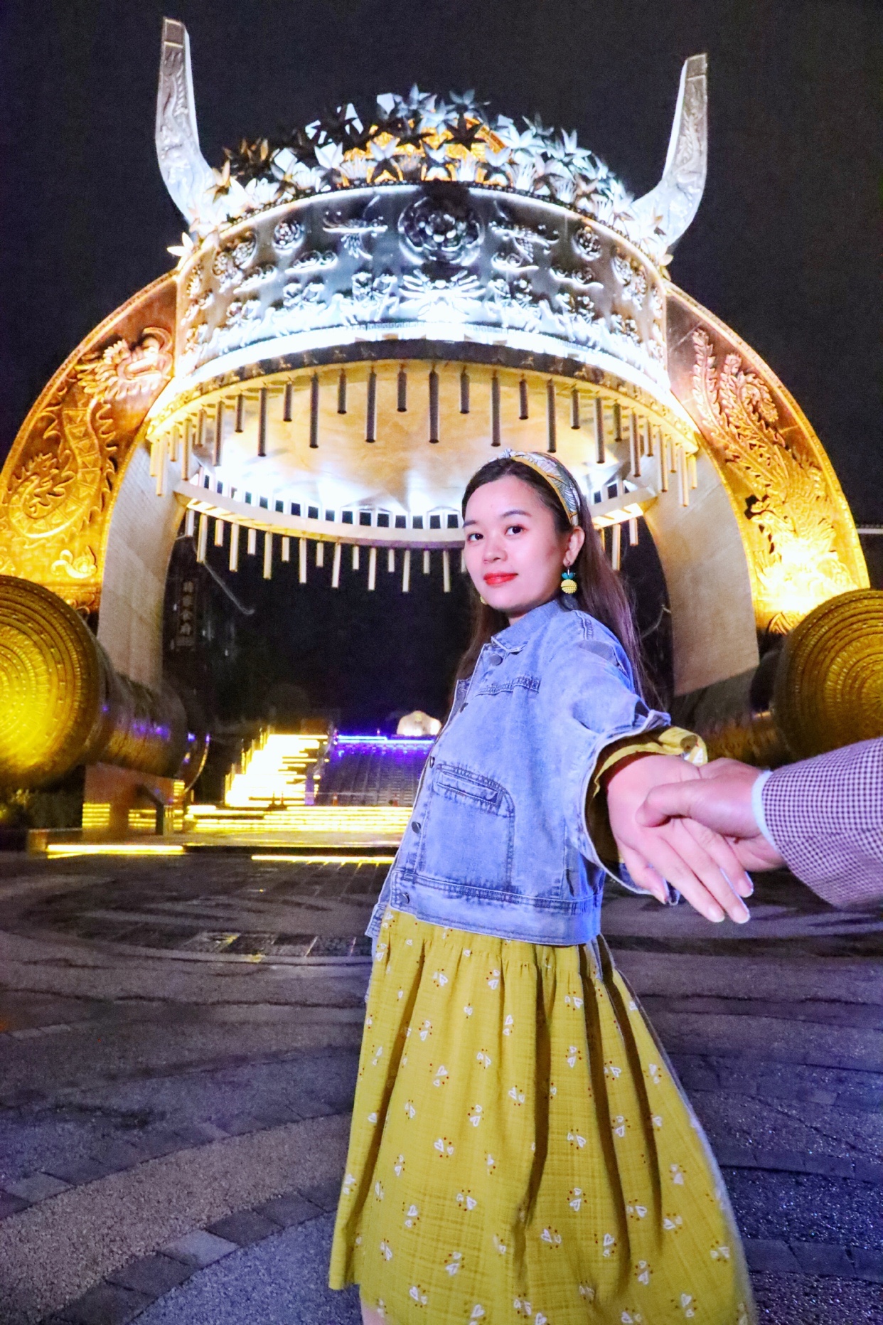 景区西门有个网红打卡点,就是巨大的苗族头饰,白天拍没啥感觉,夜晚华灯初时拍照,真的美得不要不要的。