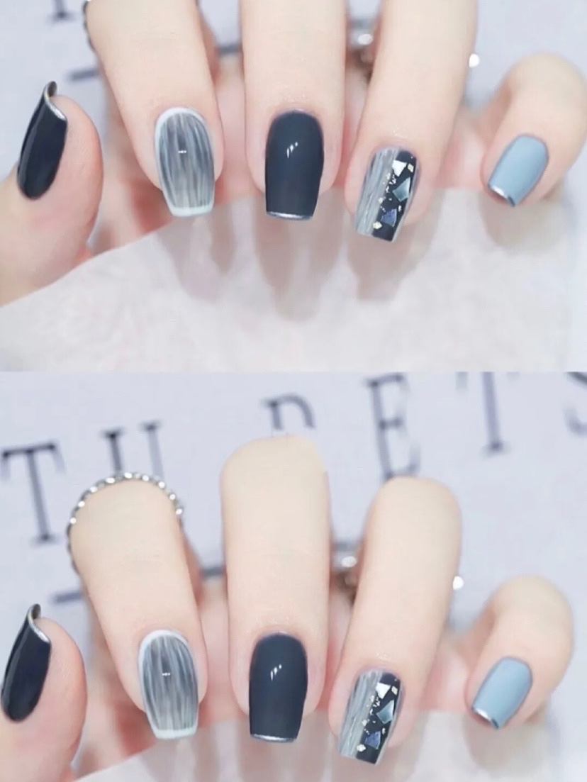 灰蓝色系的美甲来喽