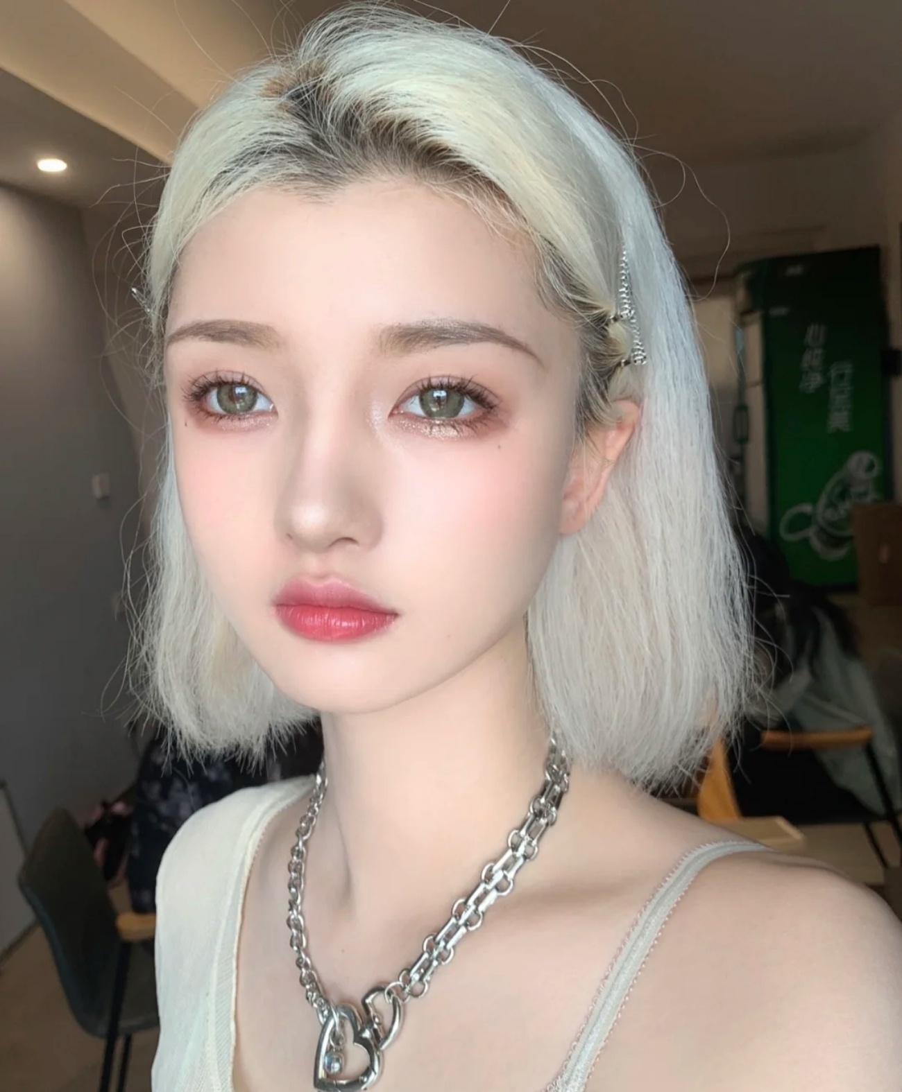 染完白金色后的第一个柔雾感妆容再夸一遍白金色实在是太美了!搭-美图社区-美图秀秀