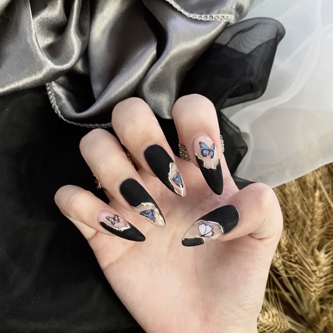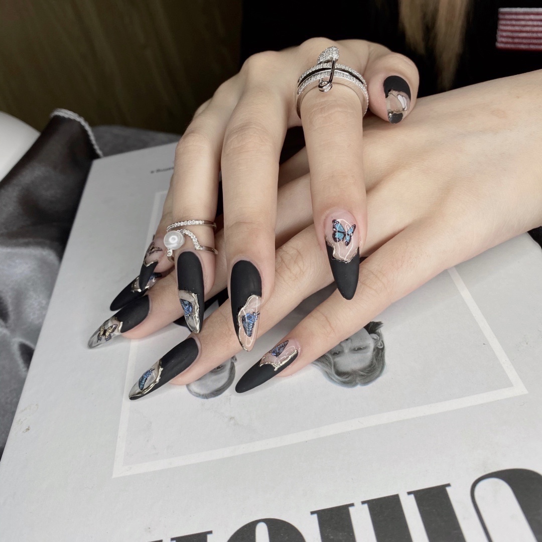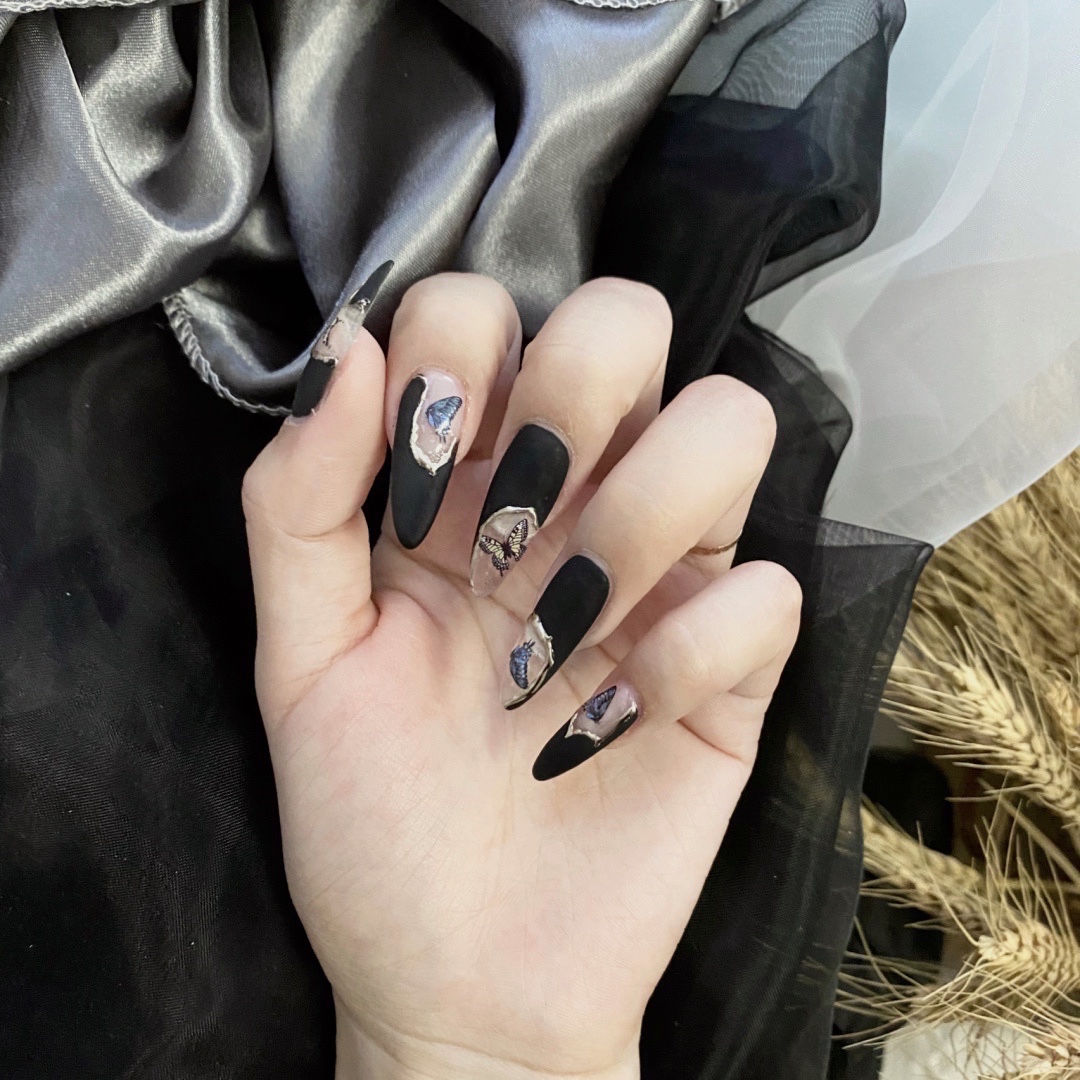 又酷又温油的一款💅 做了磨砂黑酷酷的 蝴蝶的贴纸又很温柔^