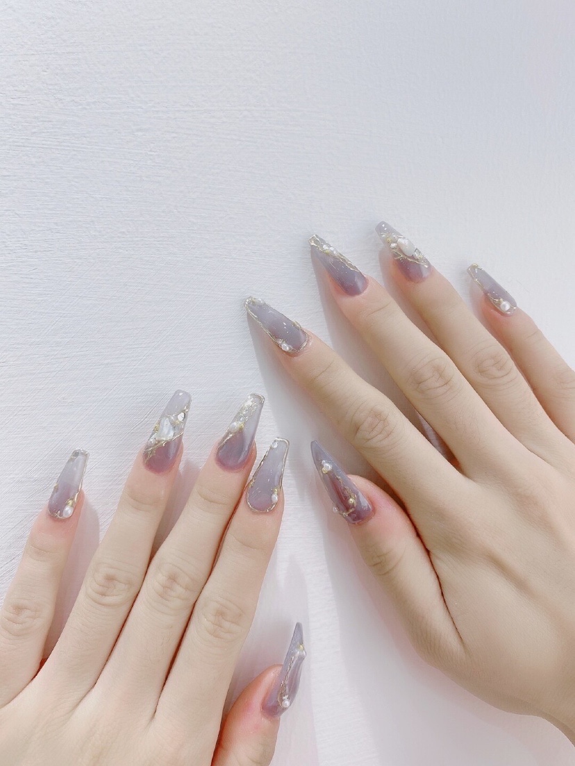 日系美甲|秋冬美甲涩味美甲,这高级的灰紫色巨显白。-美图社区-美图秀秀