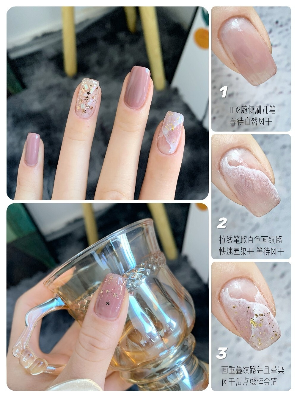 3⃣️食指的X大理石纹法在图⑥,晕染速度要快哦