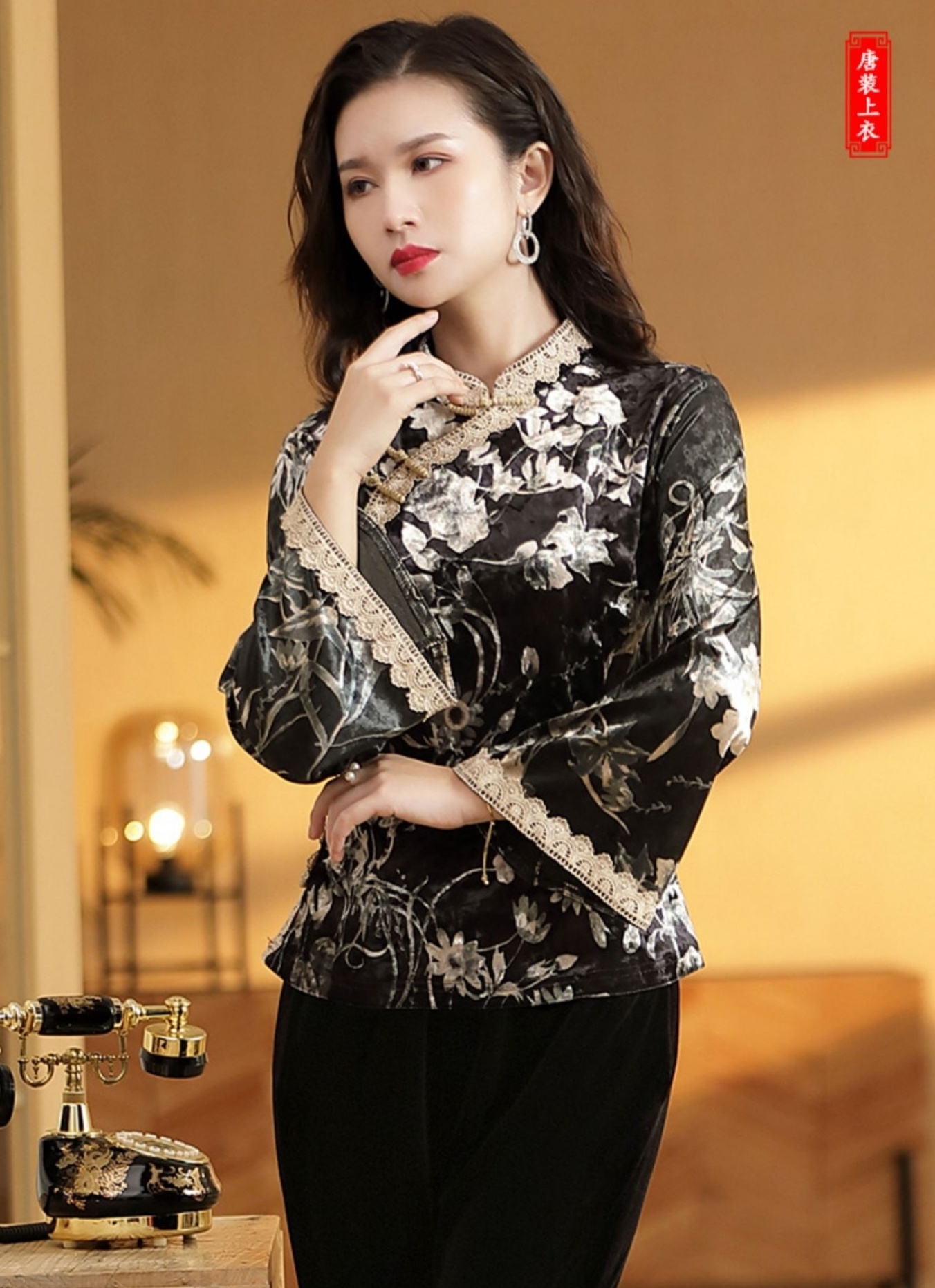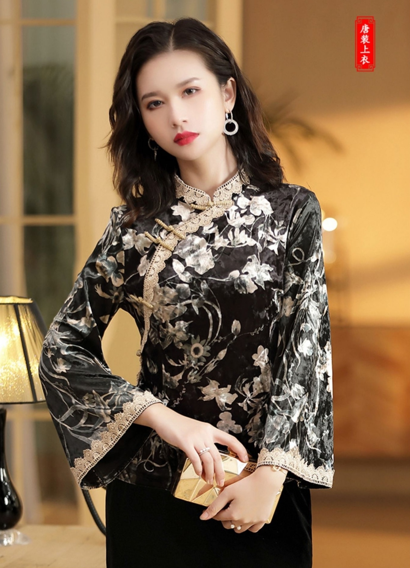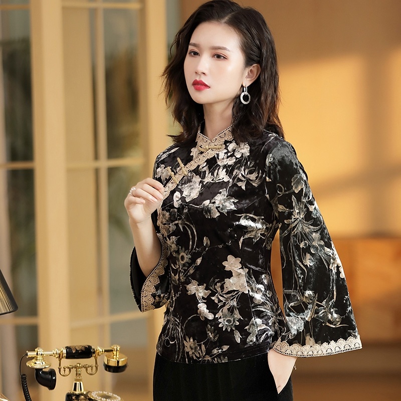 中式民国风唐装女装🌺复古中国风喇叭袖印花金丝绒改良旗袍盘扣上衣🌺🌿唐装中国和世界华人女性的传统服装,被誉为中国国粹和女性国服🌹