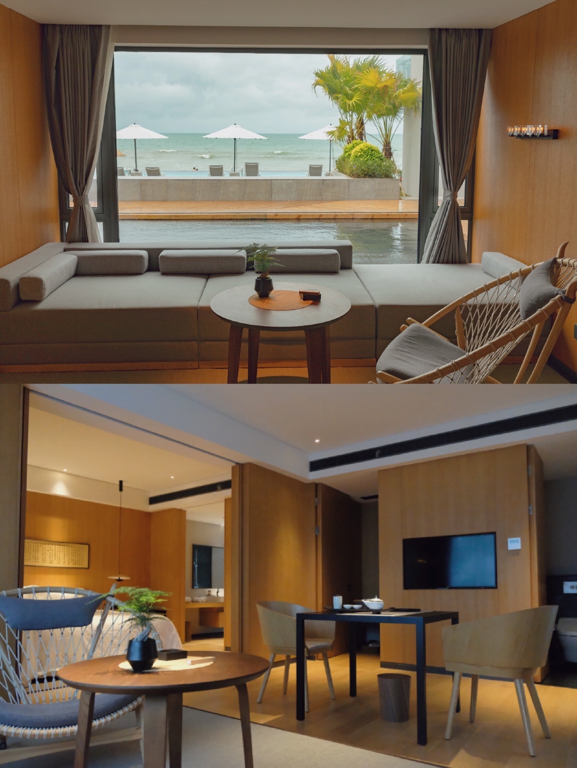 檀舍TANHOUSE是以东方简约为主,每间客房的设计风格都各有特色,所有海景套房都直面海景,躺在床上就能欣赏美景⛱️