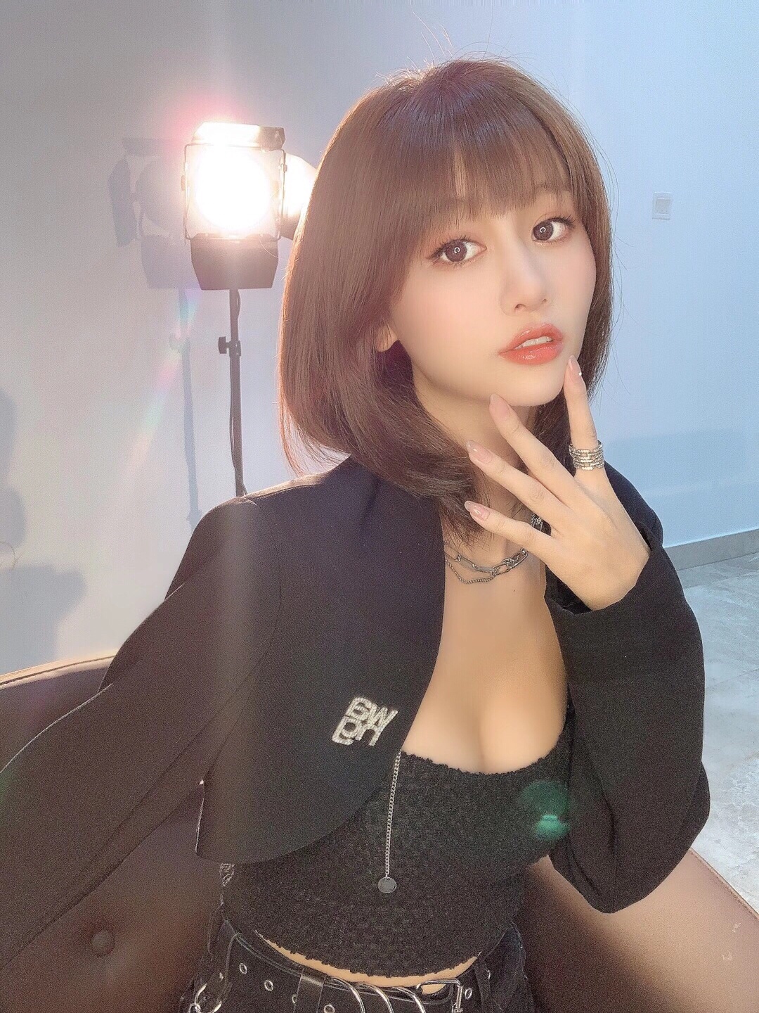 稍微带有一点弧度,刘海两侧稍长,形成一个小小的若隐若现的三角区域,对线条圆润的脸部起到完美的修饰作用。