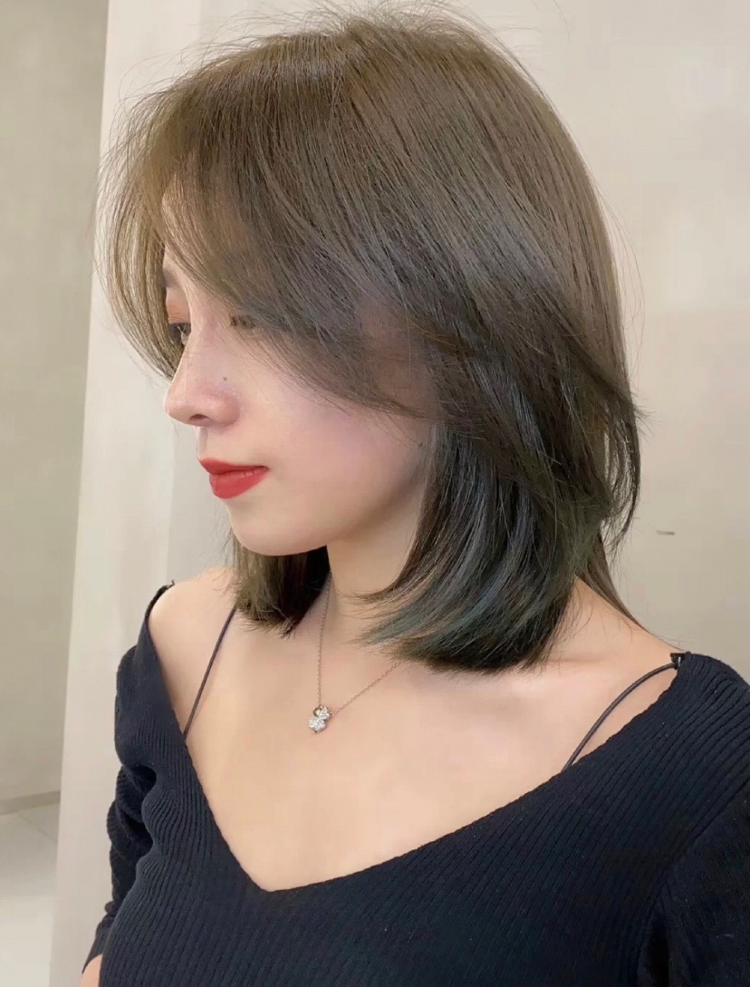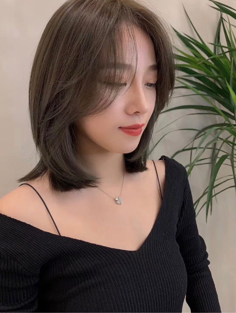 锁骨发、中发发型、流行发型、灰棕色