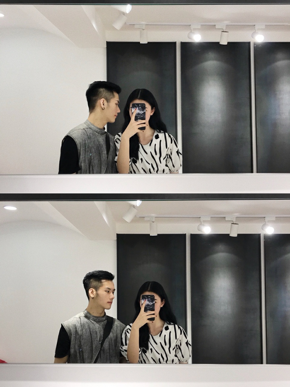 2⃣穿同一个色系的衣服,看起来就像情侣装一样,他黑色,你选择白色,拍出来的照片更俏皮一些,不会摆pose的宝宝也可以参考一些情侣博主。如果实在想拍合照的宝宝也可以找路人帮忙拍哦!