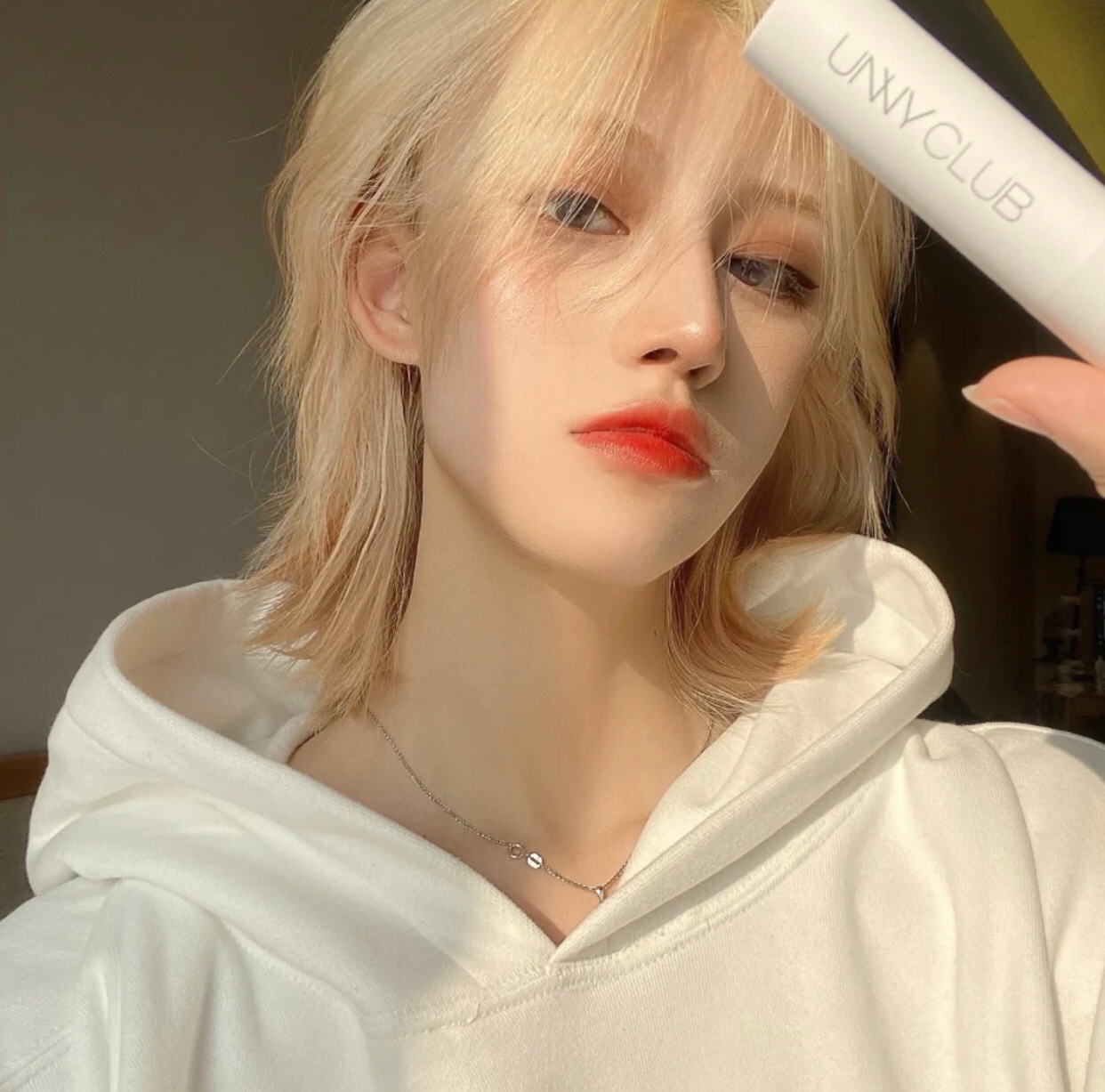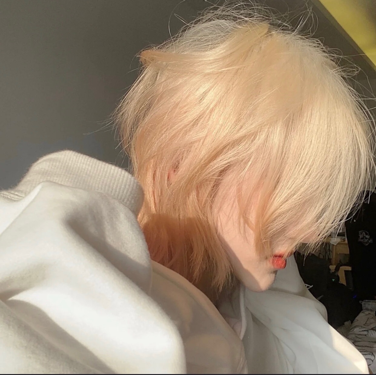 这个发色太显白了 白金色 搭配浅色衣服超级显白