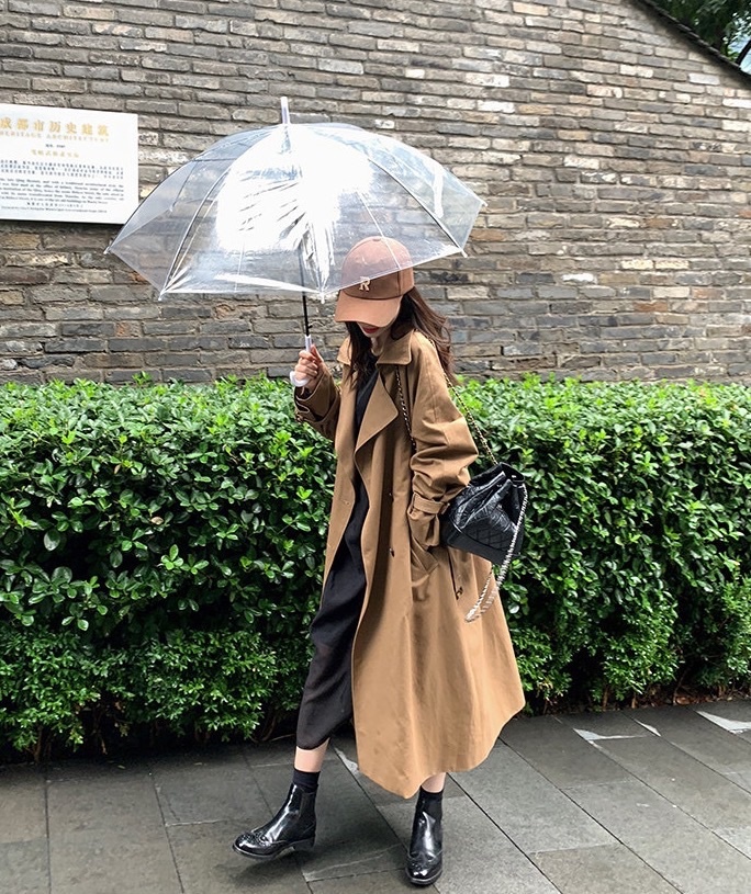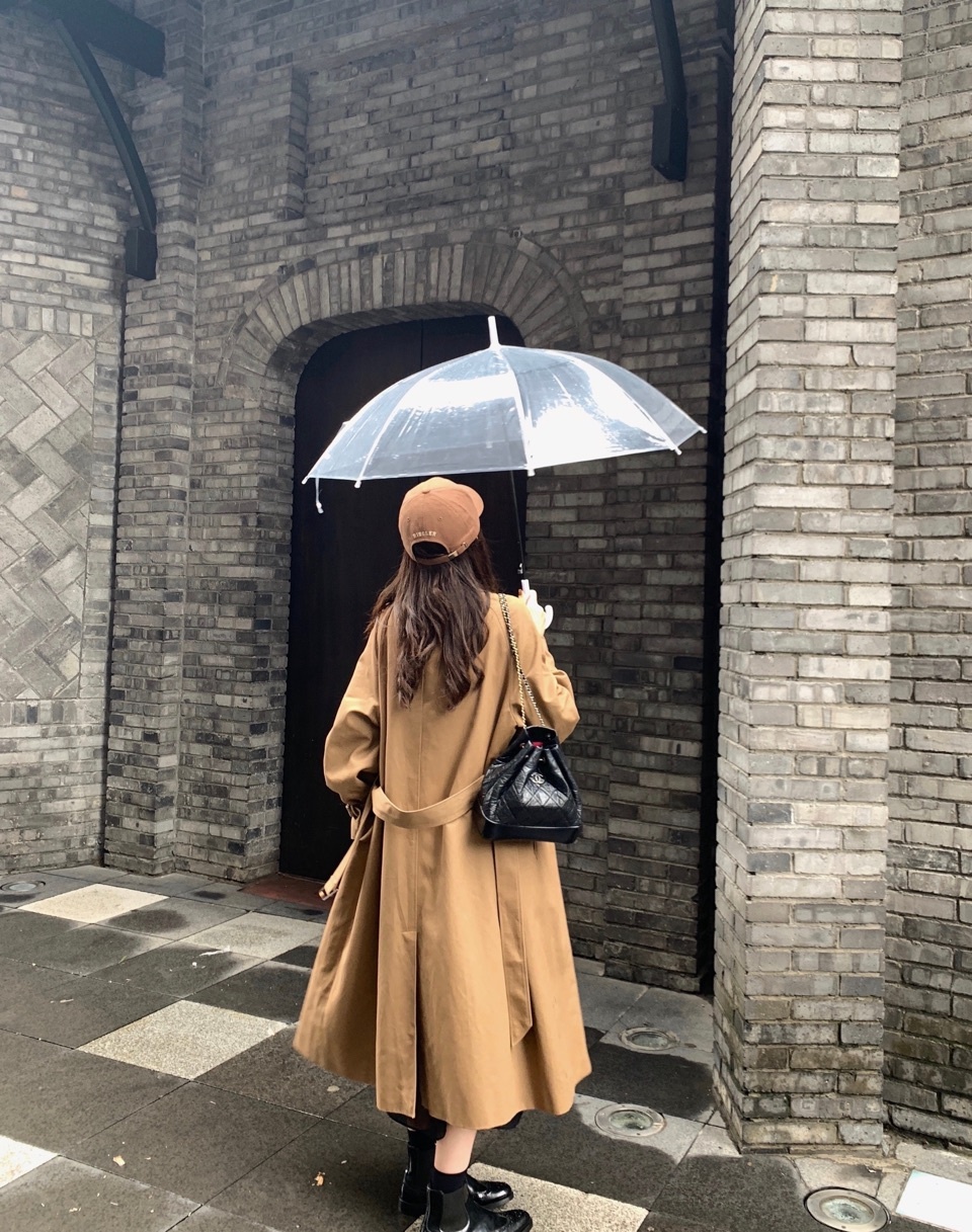 这件风衣要比普通料子的厚实很多 ,防风防寒,可以穿到早冬