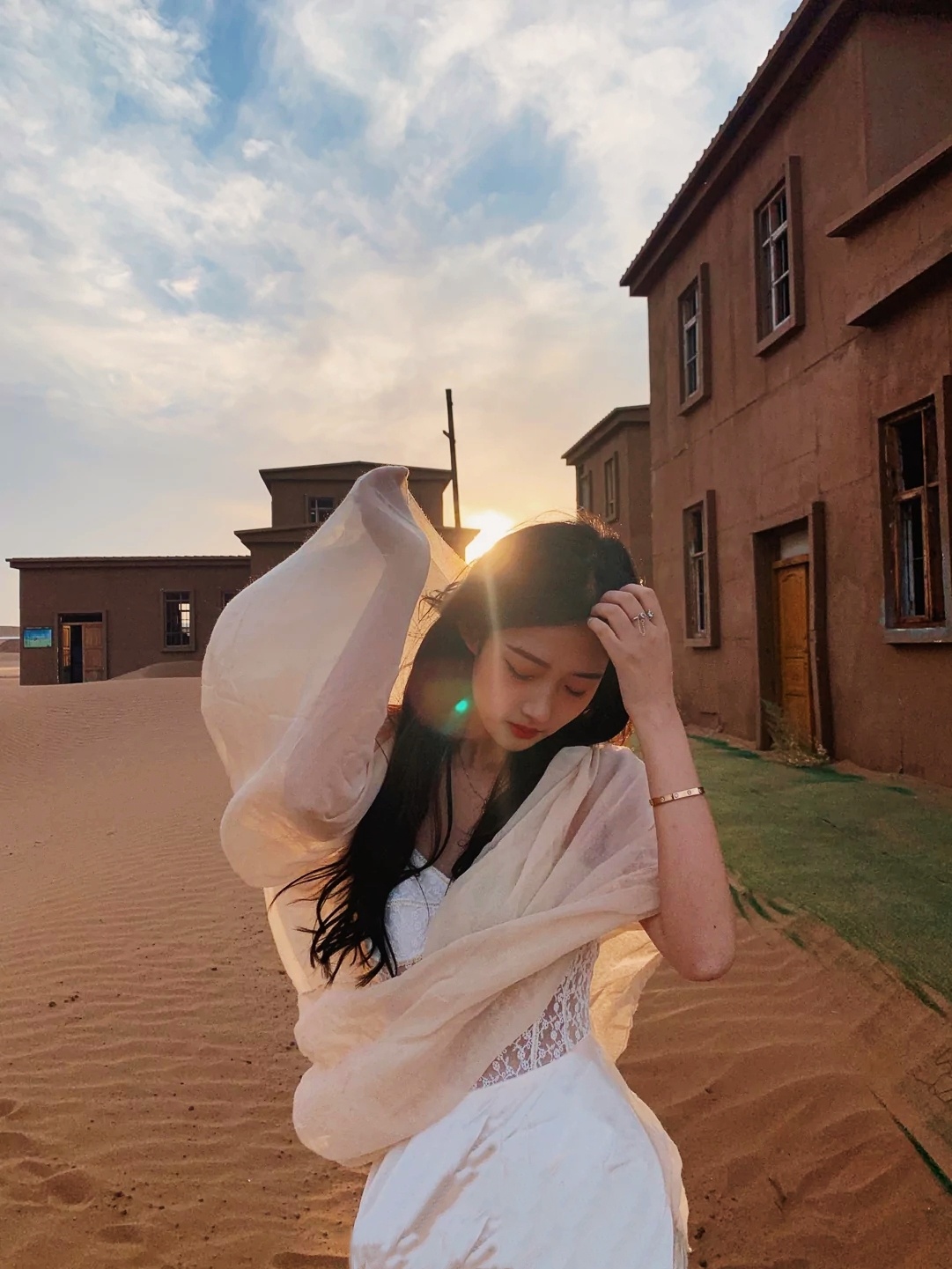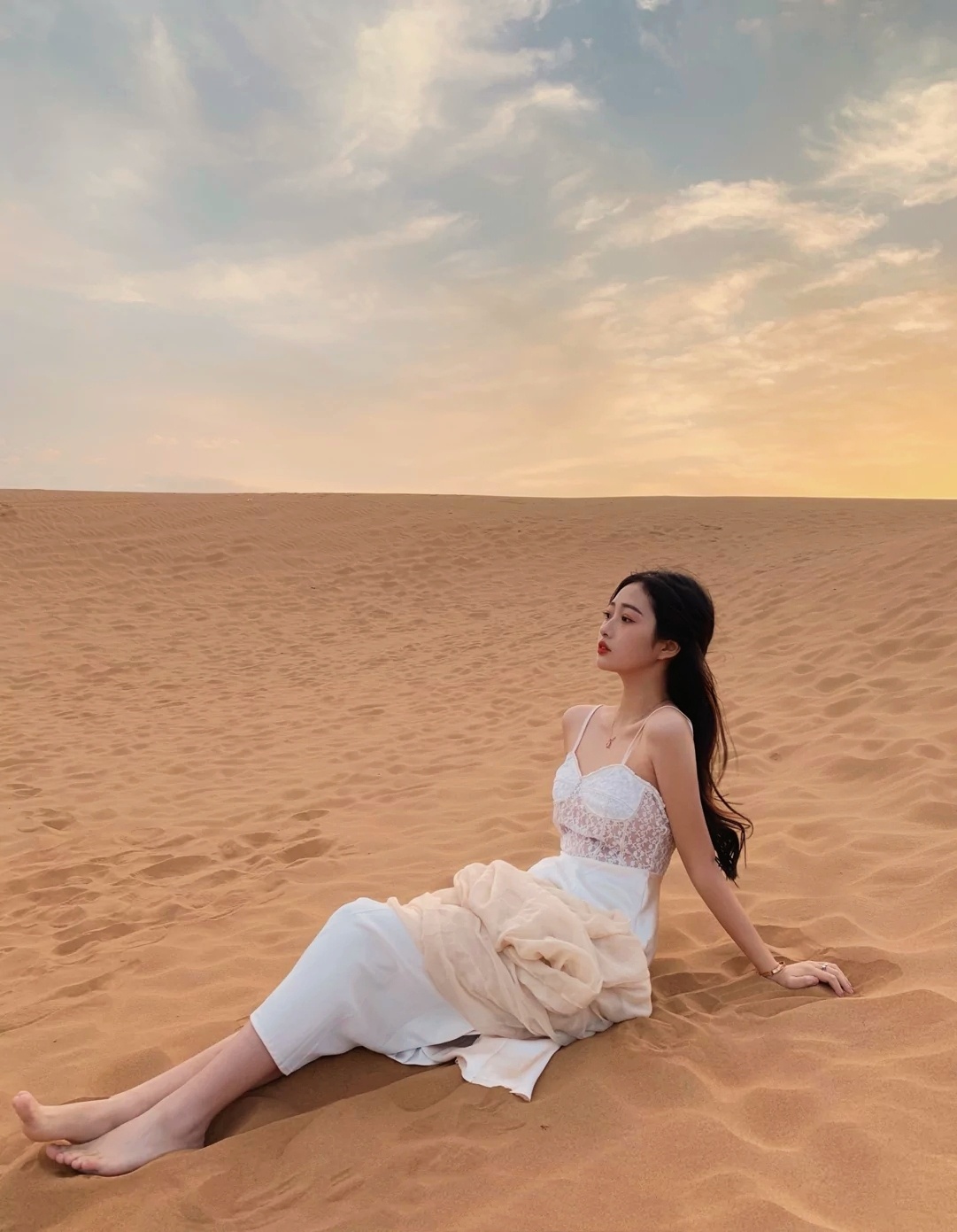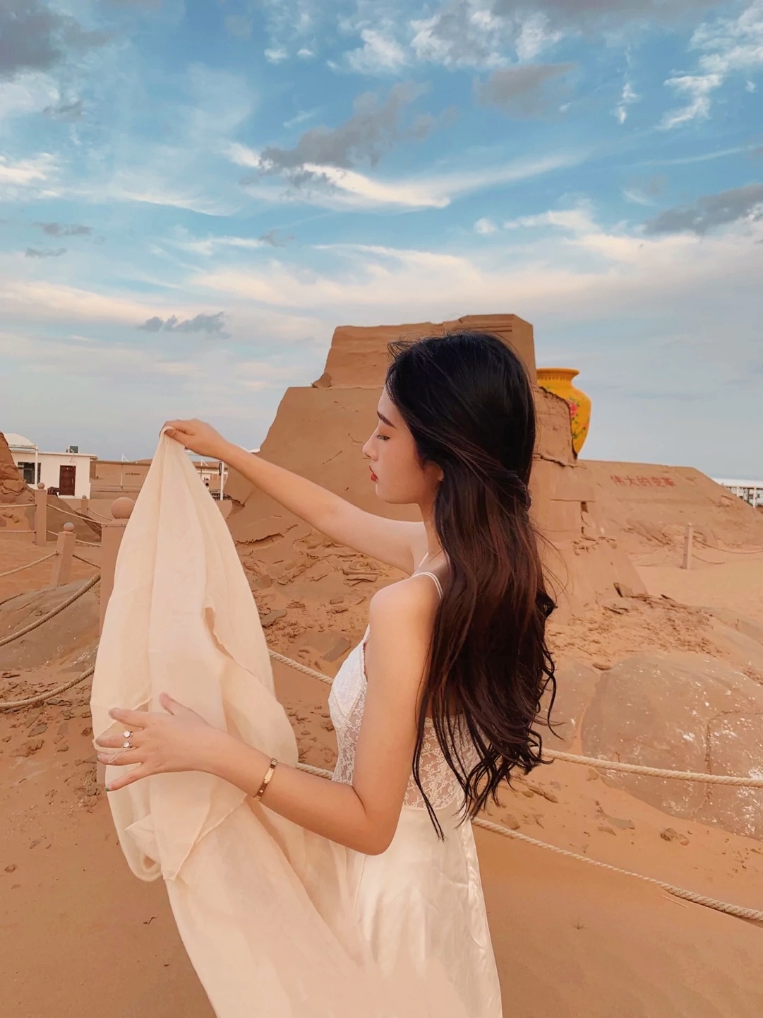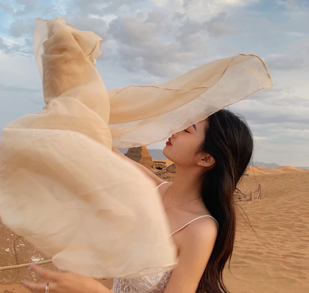 在沙漠,一条丝巾就可以凹无数造型! #去旅行# #沙漠# #拍照#