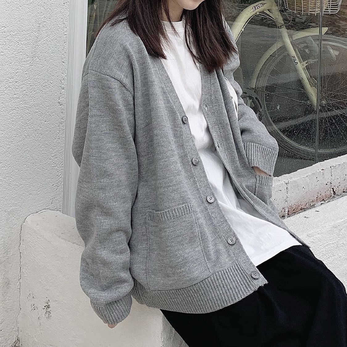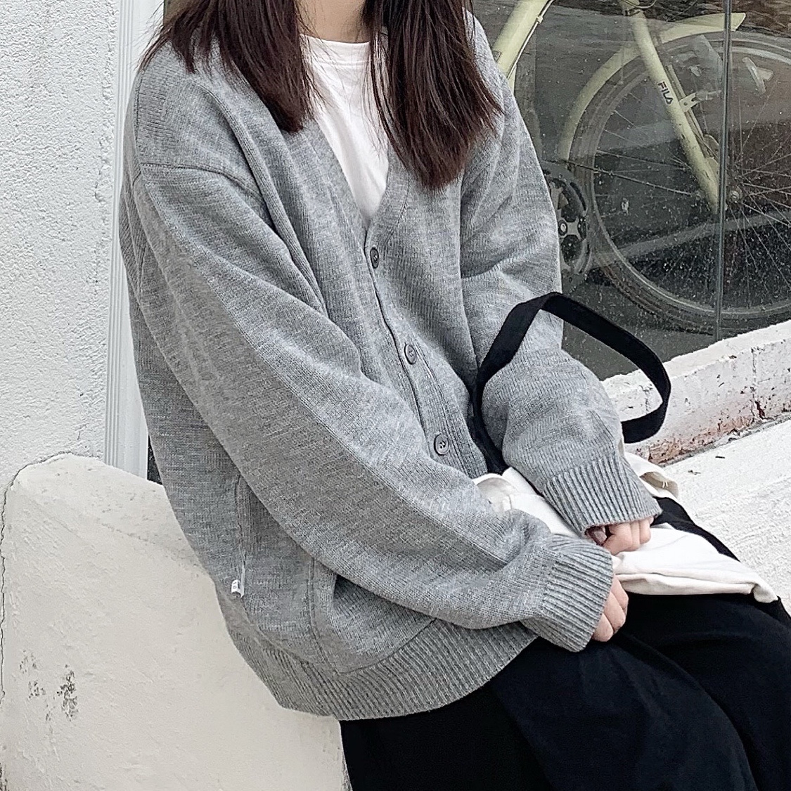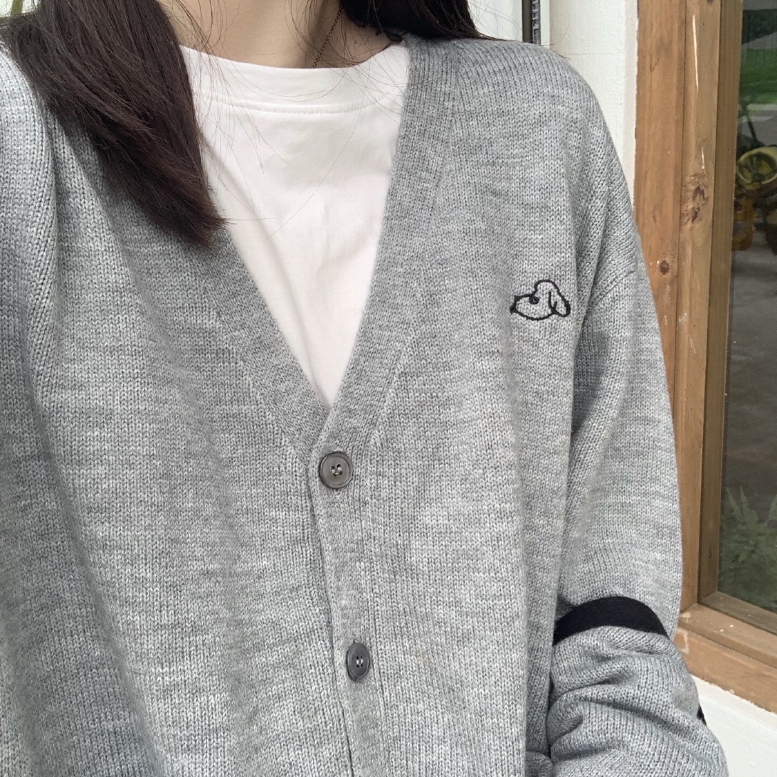 中灰色针织衫外套