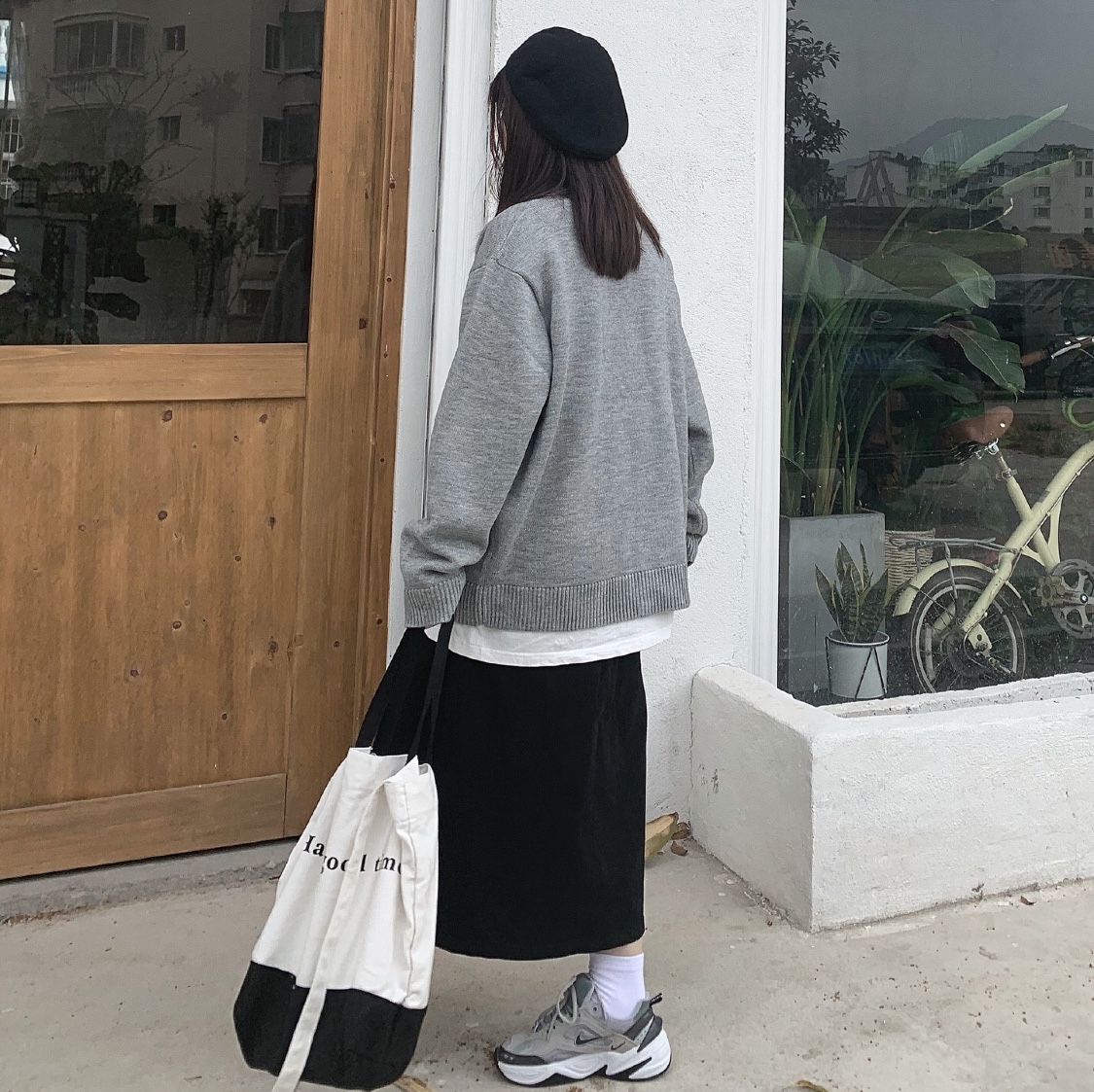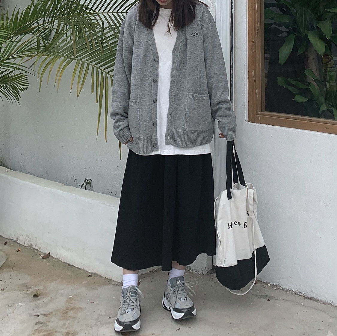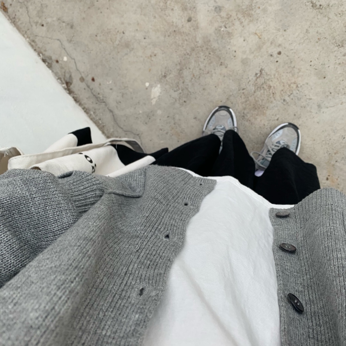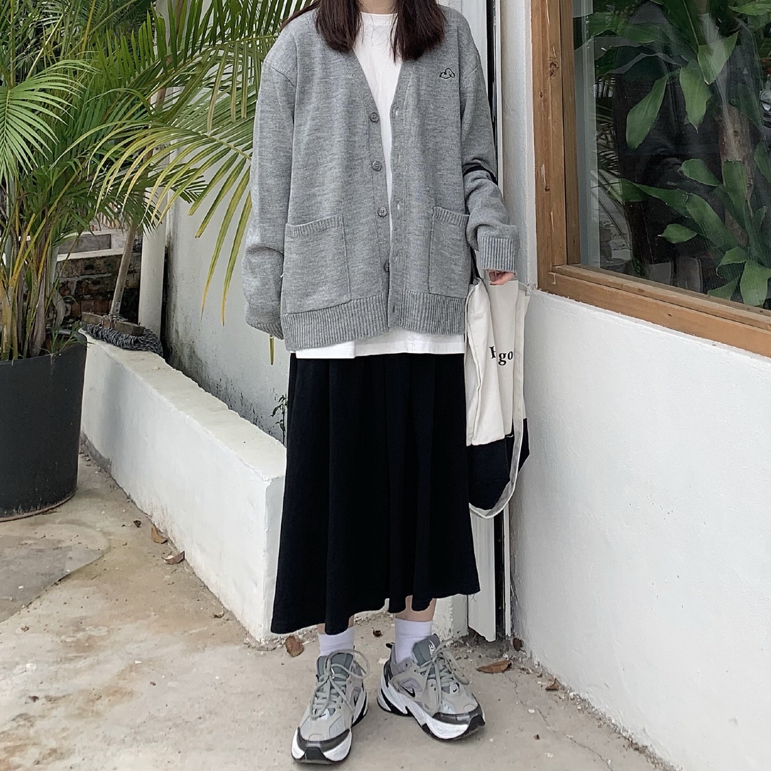 中灰色针织衫外套