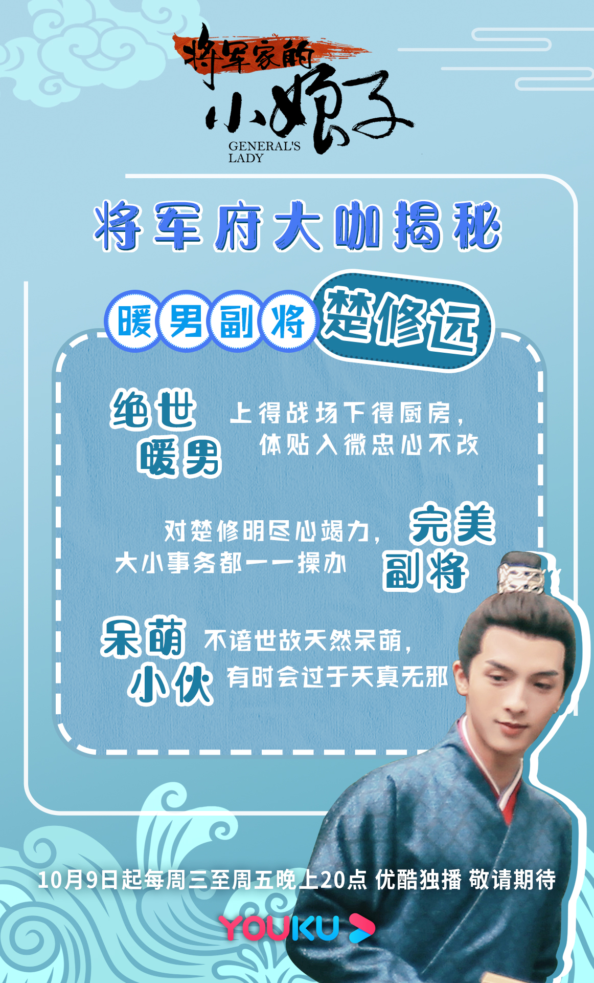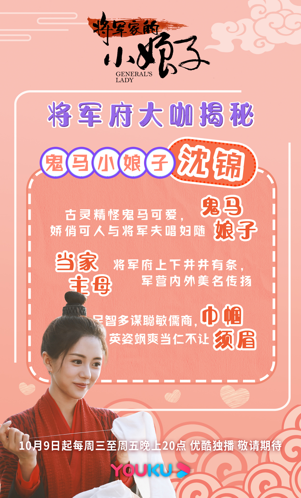 由优酷出品、北京时代光影承制、吴强执导、汤敏、吴希泽、曹峻祥、卢佳等人主演的的古装青春爱情喜剧《将军家的小娘子》今日发布终极海报和终极预告,该剧改编自晋江烟波江南的同名小说,主要讲述了“庶女千金”沈锦“坐错花轿嫁对郎”,与“冷血将军”楚修明之间先婚后爱的情感羁绊。