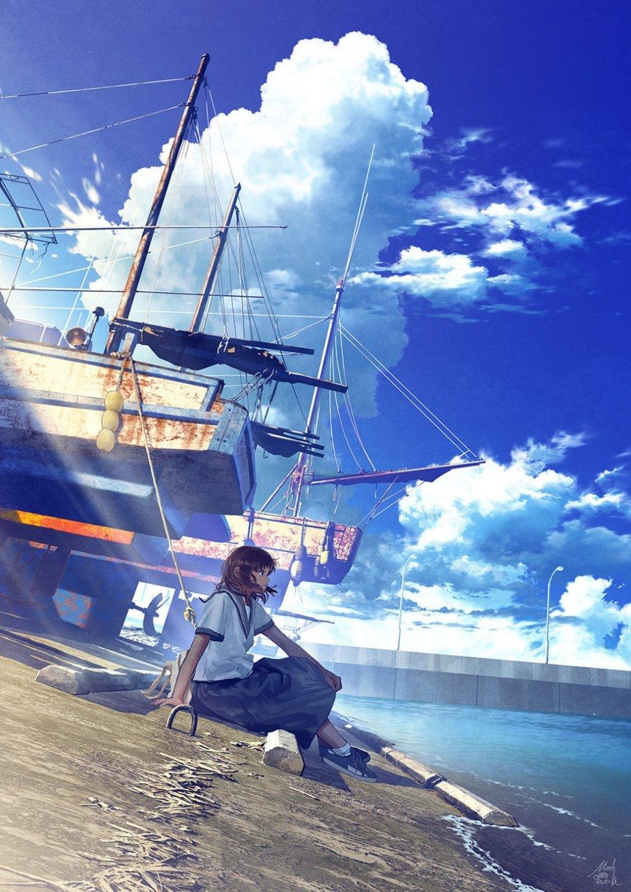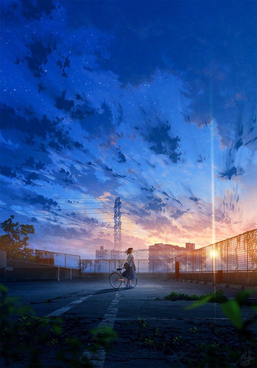 动漫插画# #治愈插画# 一组唯美梦幻的天空插图欣赏,有时候看看天空,觉得可以治愈一天的心情