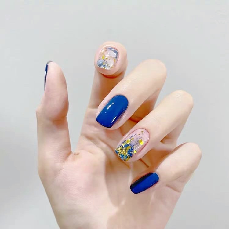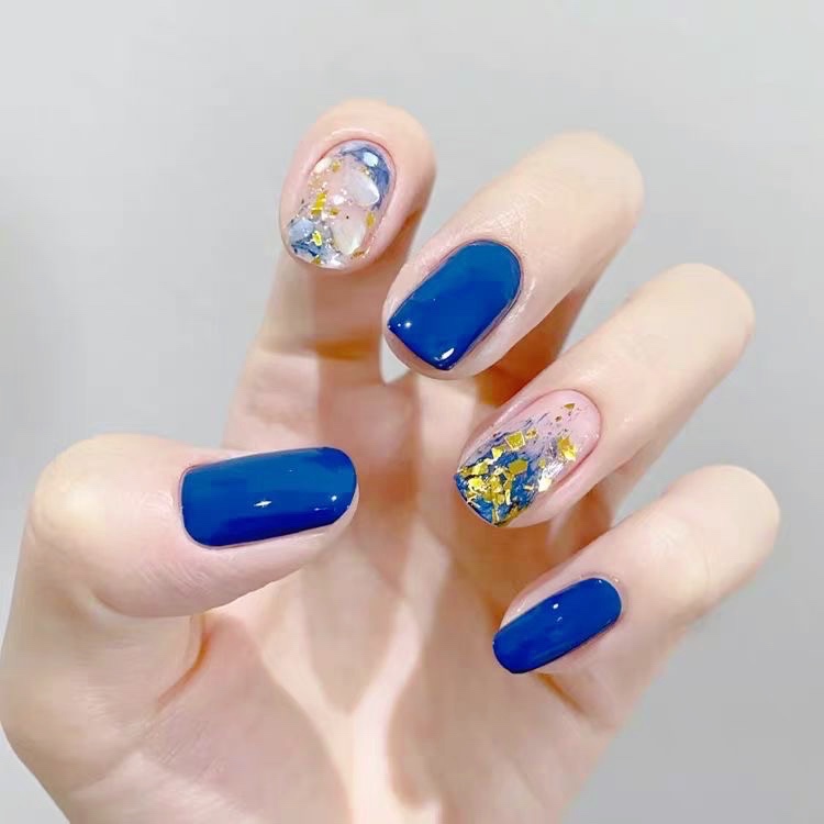 秋冬时尚蓝色美甲可以安排起来啦!😍蓝色加渐变或者晕染搭配亮-美图社区-美图秀秀