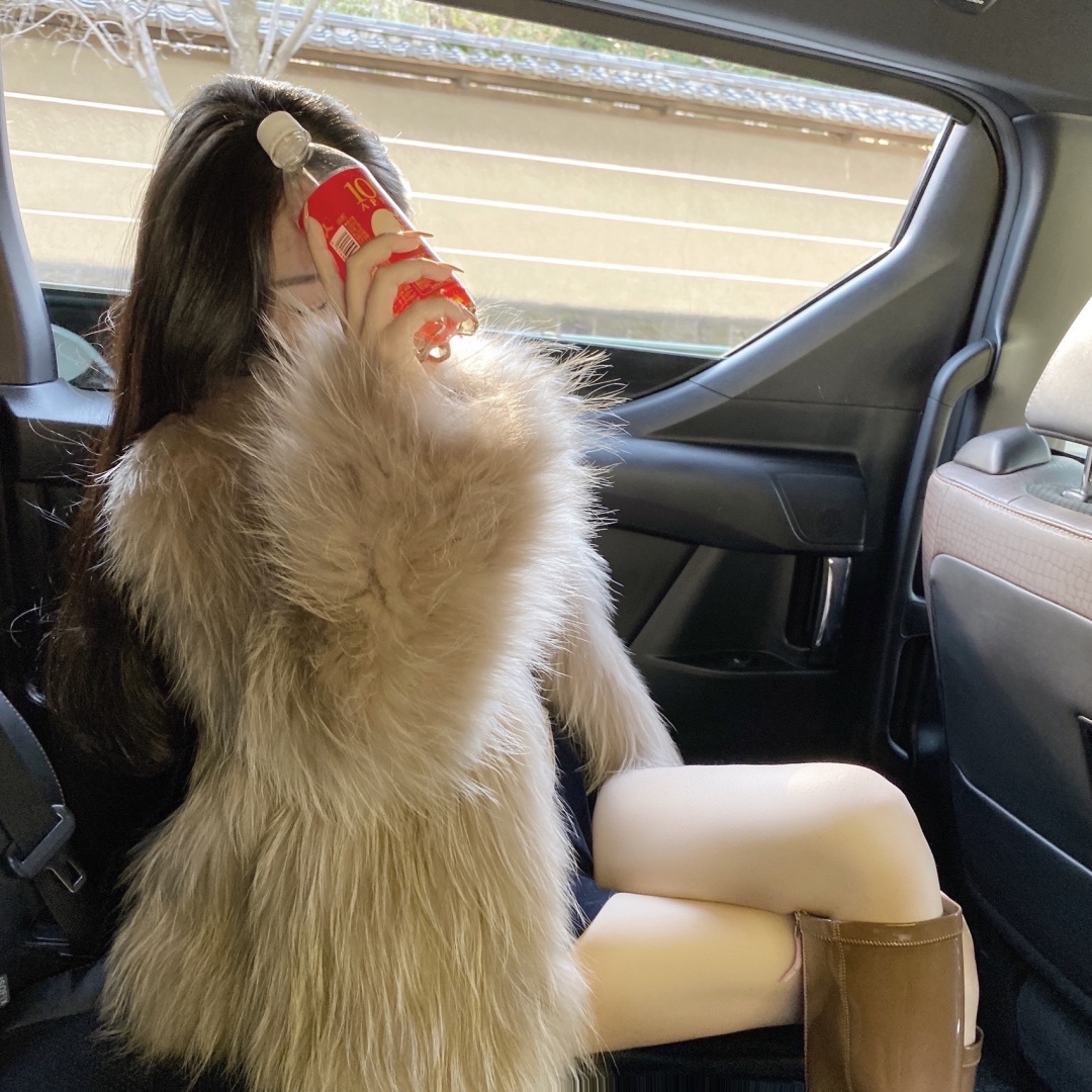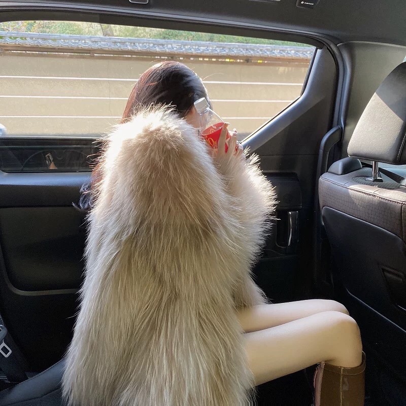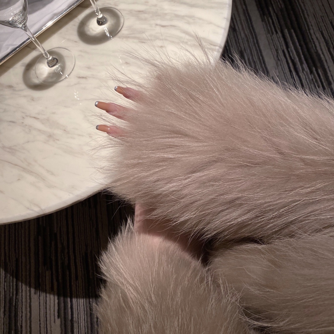 好爱的一款貉子毛编织皮草,奶茶色太温柔了吧!