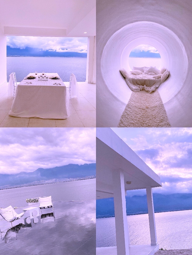 1️⃣一层很多个圆形⭕️的小屋子,软绵绵的床,各种拍,超美。⚠️注意:不要太靠前,洞口前比较危险哦,不适合带小孩子过来。旁边有一个餐厅房,180度海景,