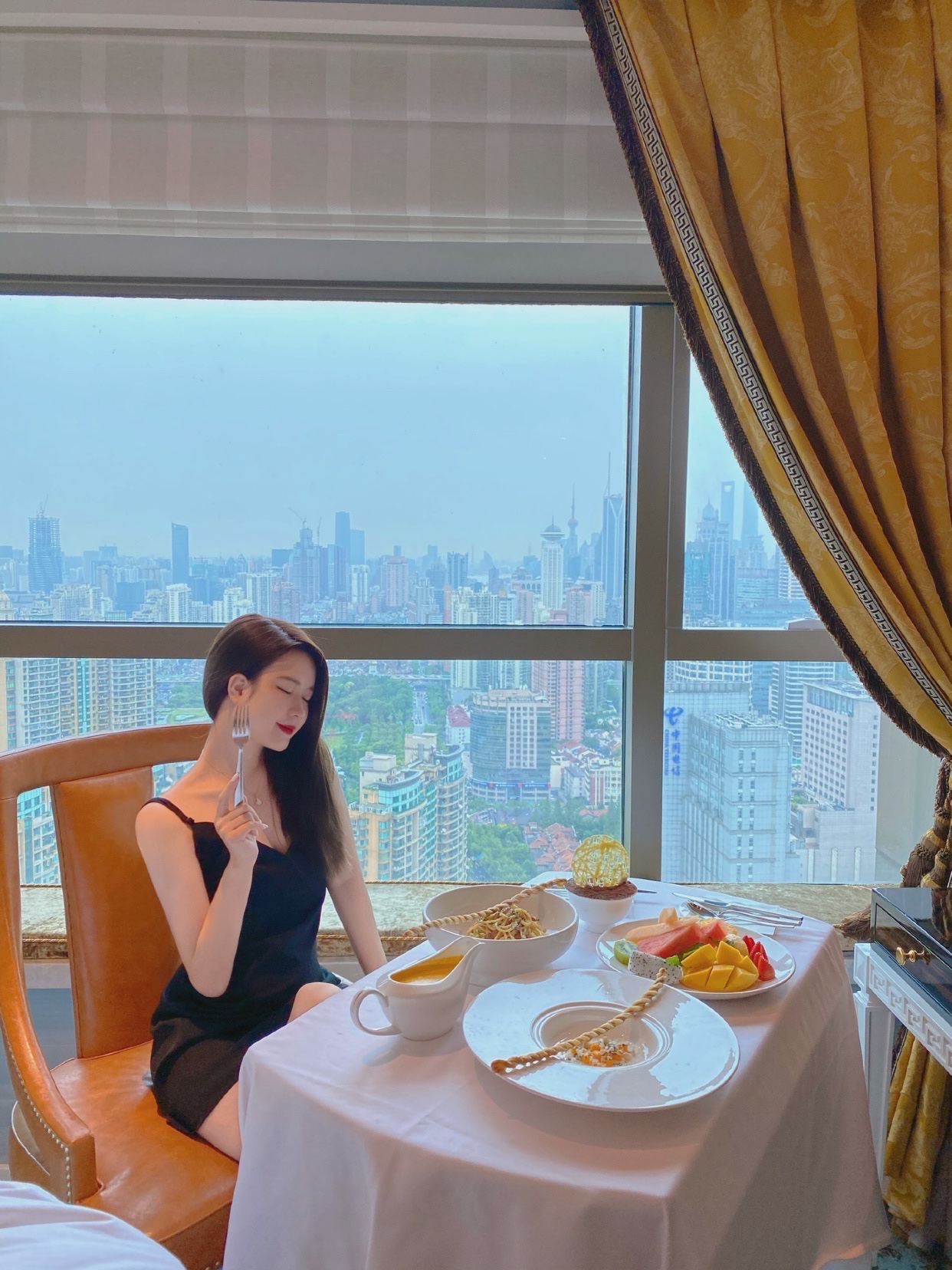 🏨这家瑞吉是英伦复古风,城景可以看到东方明珠,夜景也很美。