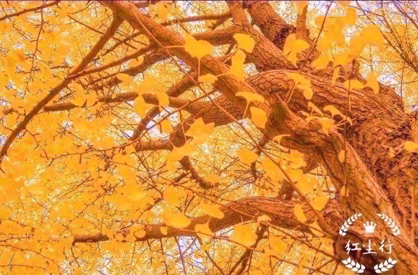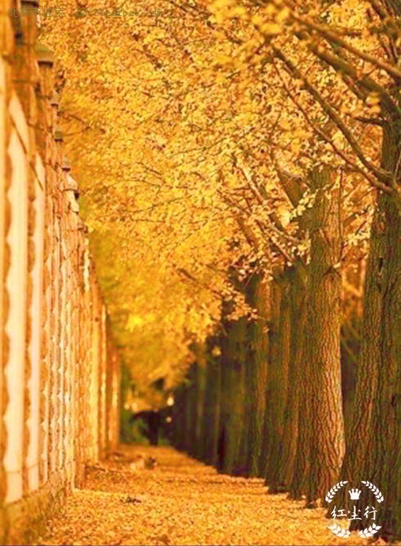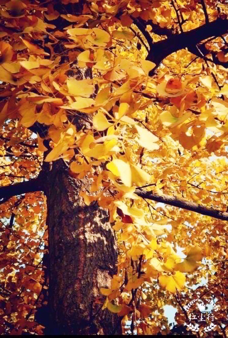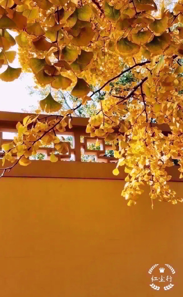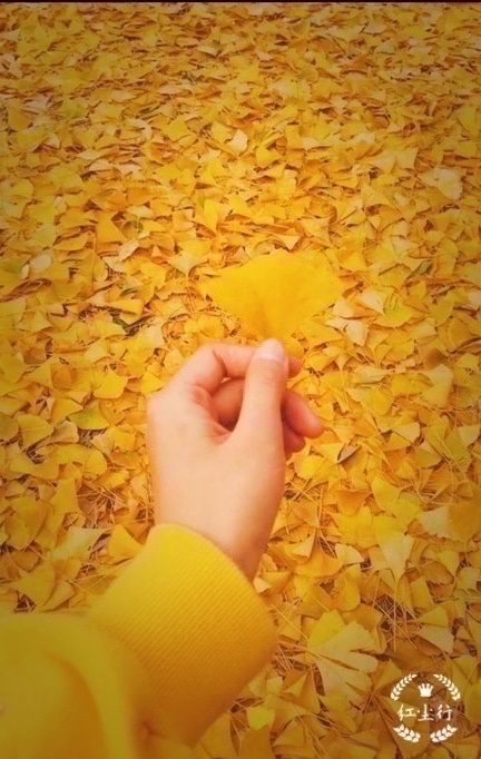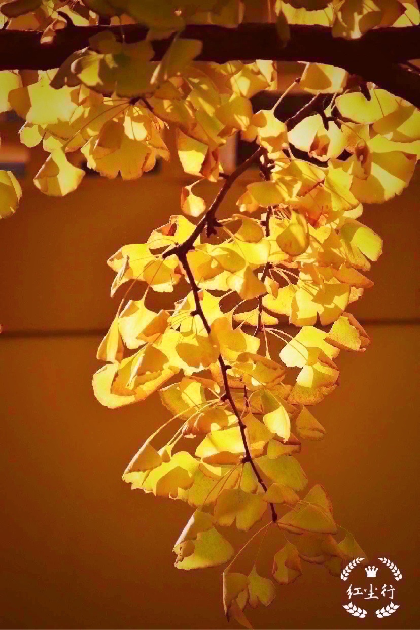 静静地欣赏着这染黄了一切的秋色,终于明白深秋时节为什么叫“金秋”了。除了那金涛滚滚的稻田、那鲜红饱满的苹果、那一嘟噜一嘟噜的紫色的葡萄,还有什么能比这金色的银杏叶更能当“金秋”的美称呢?