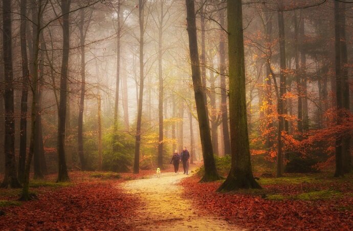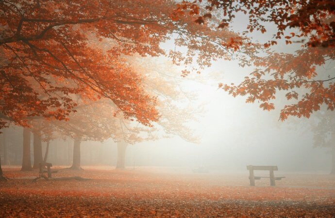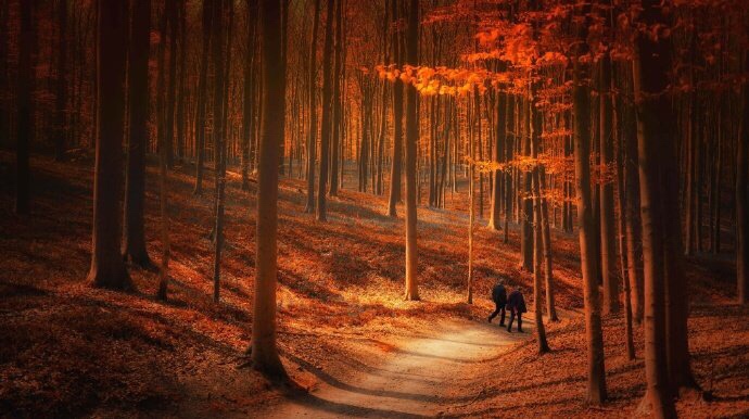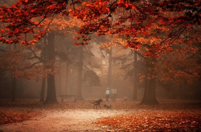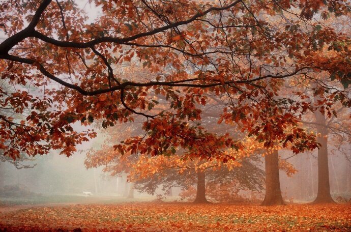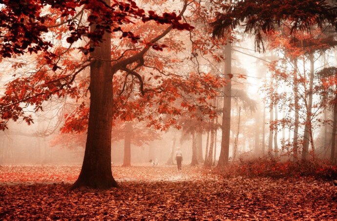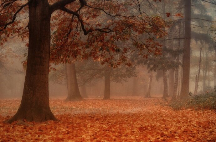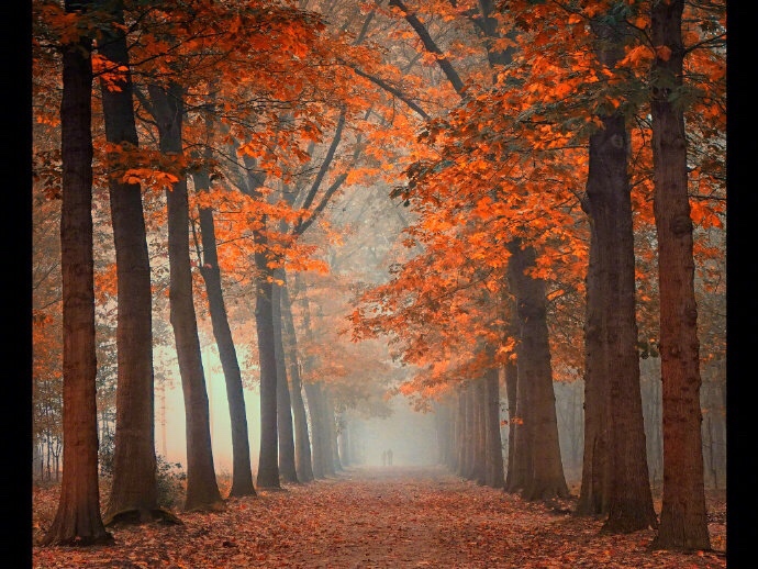 红叶深秋景,黄花暮雨时。